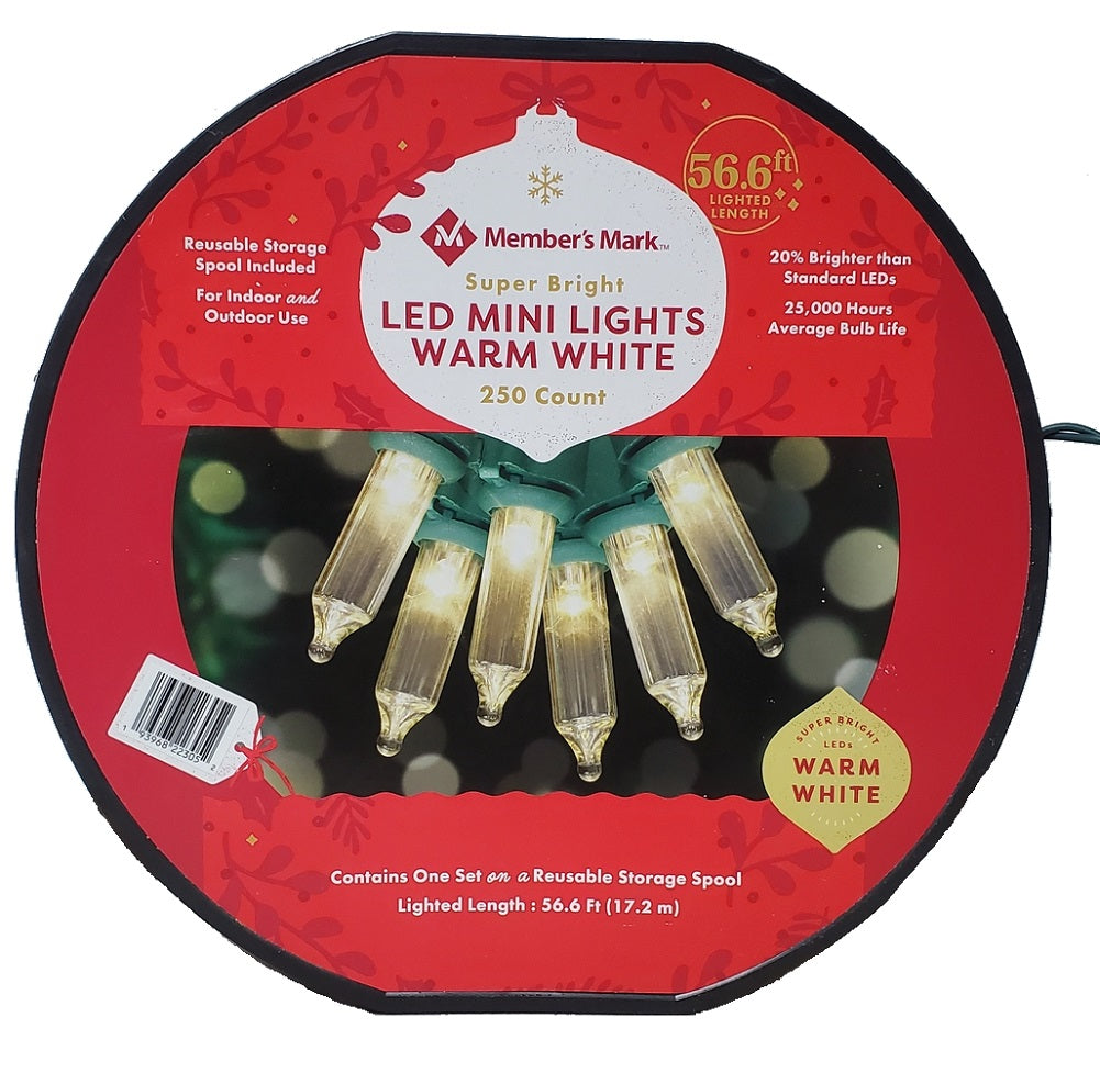 Member's Mark 250-Count Super Bright LED Mini Lights make a great addition to your holiday décor to brighten the season. These super bright classic light LED mini lights are 20% brighter than standard LED bulbs to ensure that your house is one of the brightest in the neighborhood. In addition to being super bright, the decorative mini lights feature an...