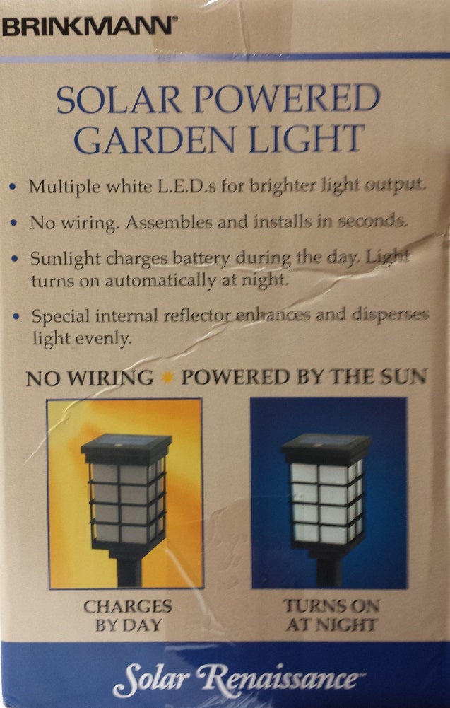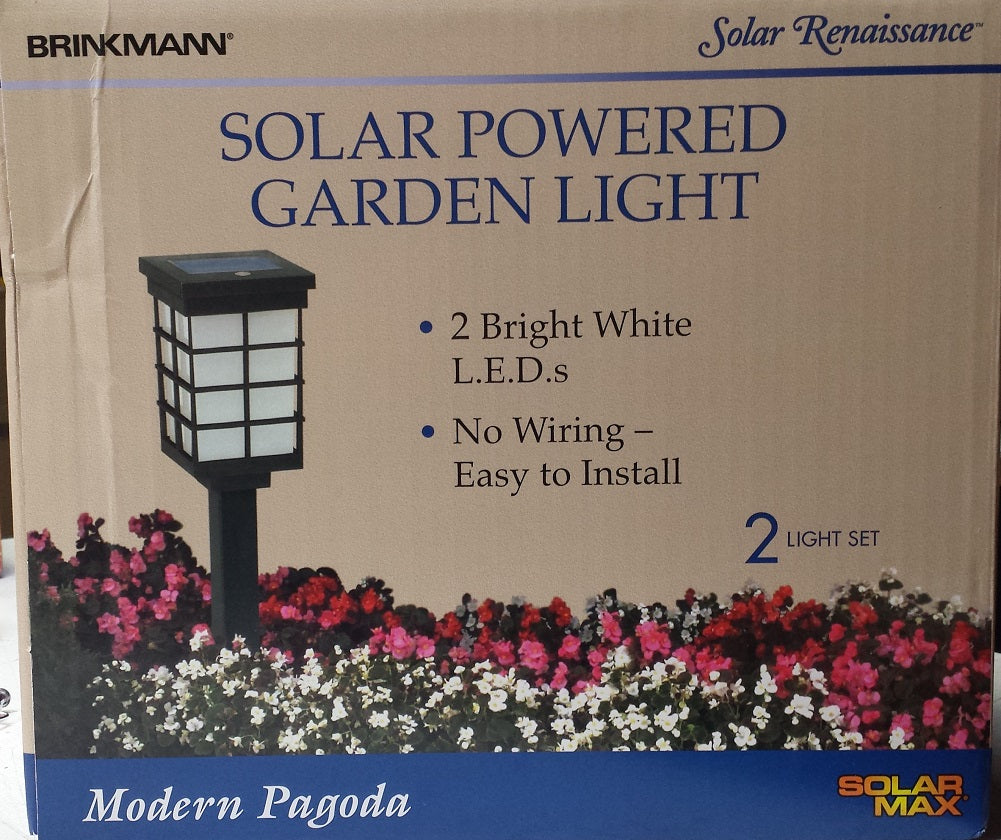 The Brinkmann Outdoors Modern Pagoda Solar Light 2pk is a beautifully designed solar garden accent light that features the LED technology for extra-long run times and special internal reflector to enhance and distribute light evenly. Light fixture comes pre-assembled for easy set-up and use. No wiring is required assembles and installs in seconds. The solar panel converts sunlight into electricity...