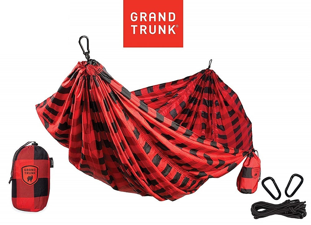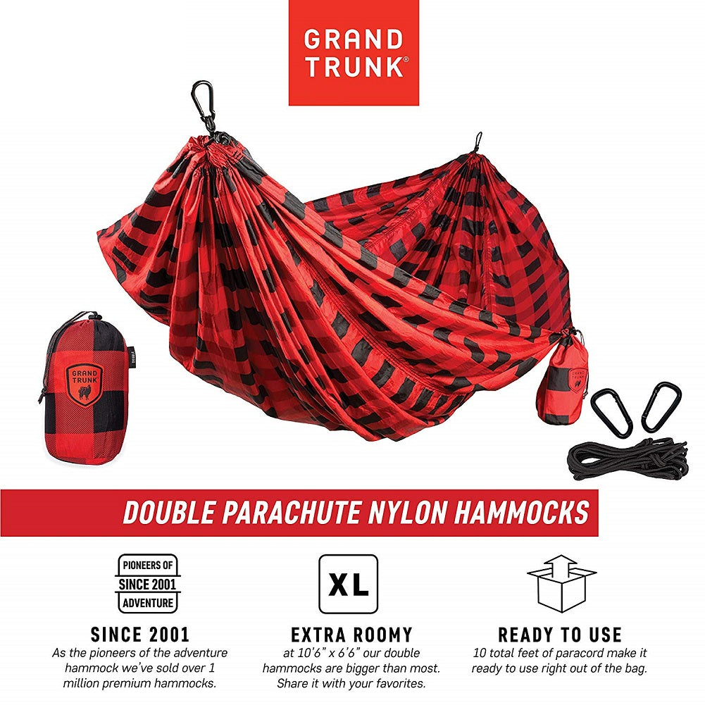Grand Trunk Hang Anywhere Double Hammock, Black/Red is a super comfortable, parachute nylon hammock is perfect for adventures - from the backyard to the backwoods. Its included stuff sack makes it portable and easy carry around festivals, while hiking or backpacking. Our extra roomy 2 person camping hammock is great for sharing with a friend or spacious for a solo...