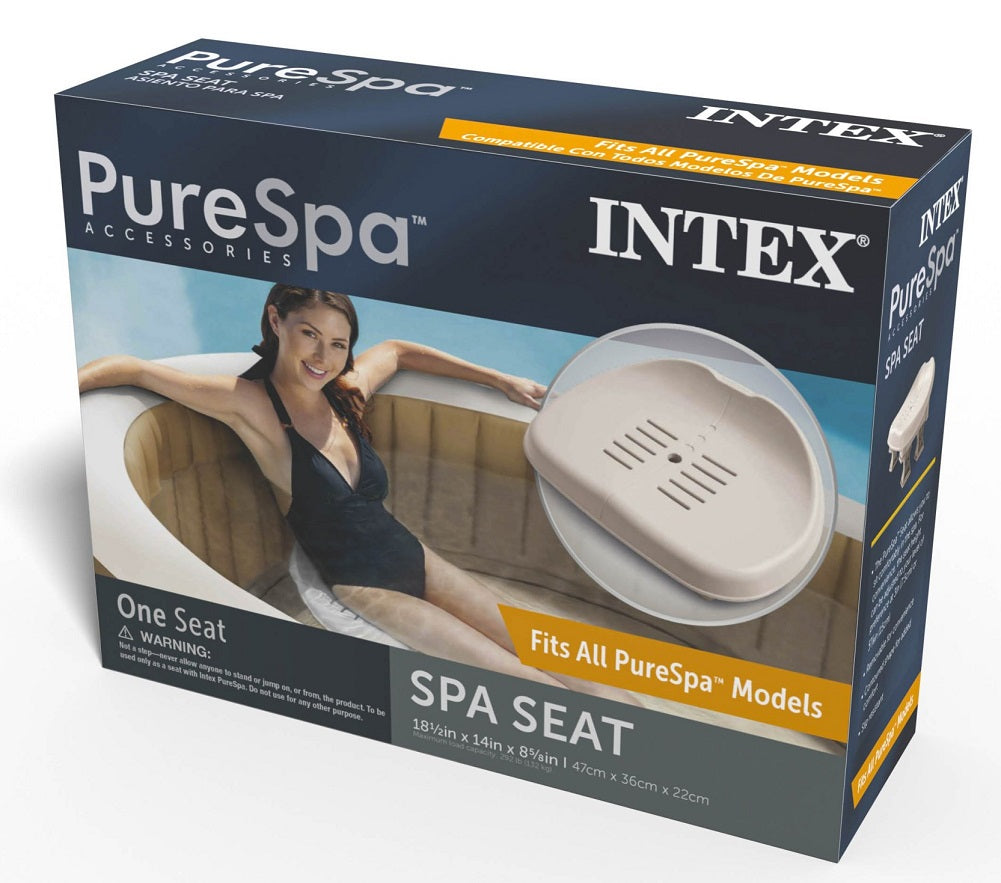 The PureSpa seat allows you to sit comfortably in the spa, raising a person's height with two different height options: 3 and #34; (7.5cm) or 5.875 and #34; (15cm). Removable for convenience. Slip resistant. Dimensions: 18.5 and #34; L X 14 and #34; W X 8.625 and #34; H (47cm X 36cm X 22cm).