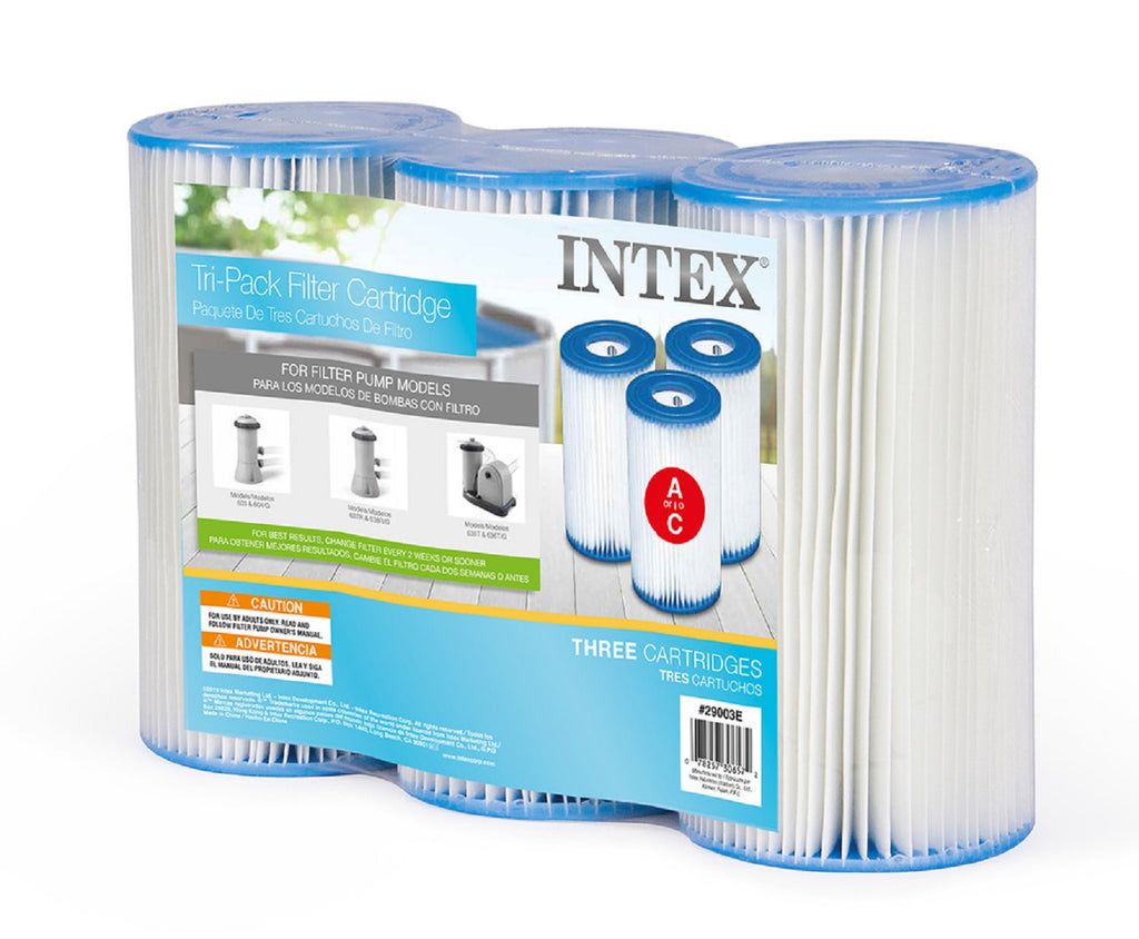 Stock up now with the Intex Replacement Type A Filter Cartridge for Pools (3-Pack). This is just the equipment you need to keep your pool in service all summer. This must have accessory to the Krystal Clear Cartridge Filter Pump, this filter cartridge is made with easy-to-clean Dacron paper for the ultimate filtration. For maximum efficiency, replace cartridges every two...