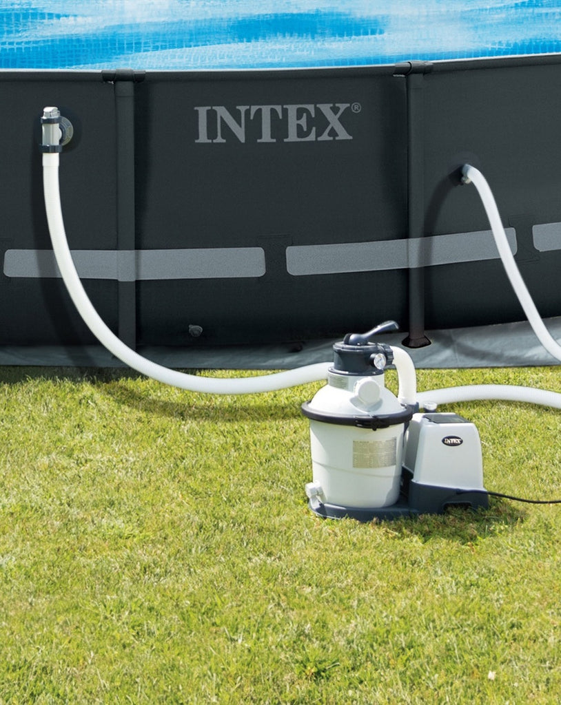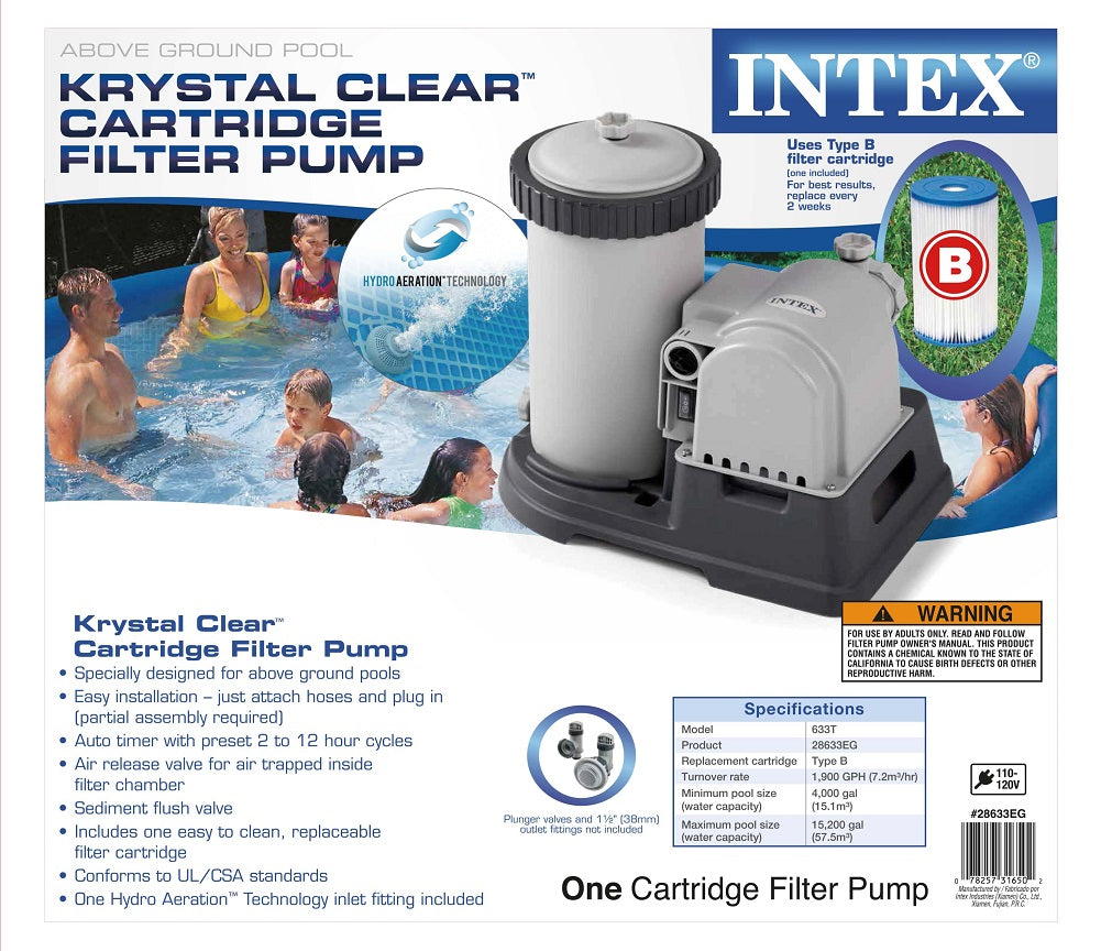 The Complete Intex 2,500 gallon per hour Krystal Clear Wet Set Model 633 filter pump with hoses, valves, strainers, and clamps fits all large pools from Intex that use threaded hose fittings, including pools such as Wet Set, Easy Set, Frame Set, Ultra Frame Set, and oval ellipse pools, as well as 18-foot and larger Sand N Sun pools manufactured...