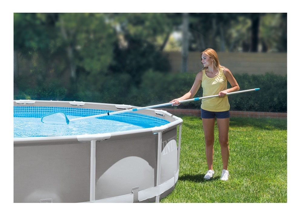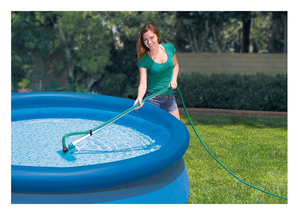 Including three essentials, the INTEX Pool Maintenance Kit helps keeps your pool water looking crystal clear. Maintenance is a part of every swimming pool and getting the right tools for the job cuts down on time spent cleaning. Attach the vacuum to the 94-inch telescoping pole. Simply connect your garden hose and suck debris into the reusable debris bag. Then...