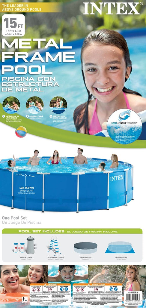 Beat the heat all summer with the Intex Metal Frame Pool Set. Engineered for strength, this pool is supported by strong, durable steel frames which are powder coated for rust resistance and beauty. Triple strong, SUPER-TOUGH laminated sidewalls are reinforced with an all-around band to keep frame legs firmly in place. This pool will make your backyard the place to...