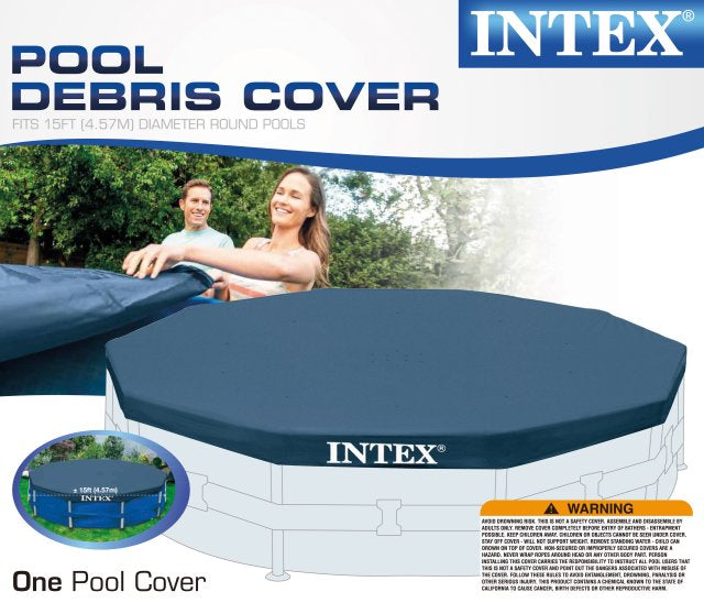 Intex krystal clear round metal frame cover. Round cover with 10" overhang. Easy to use. Makes a snug fit over the edge of the pool. Fits 15" diameter pools. Drain holes to prevent water accumulation