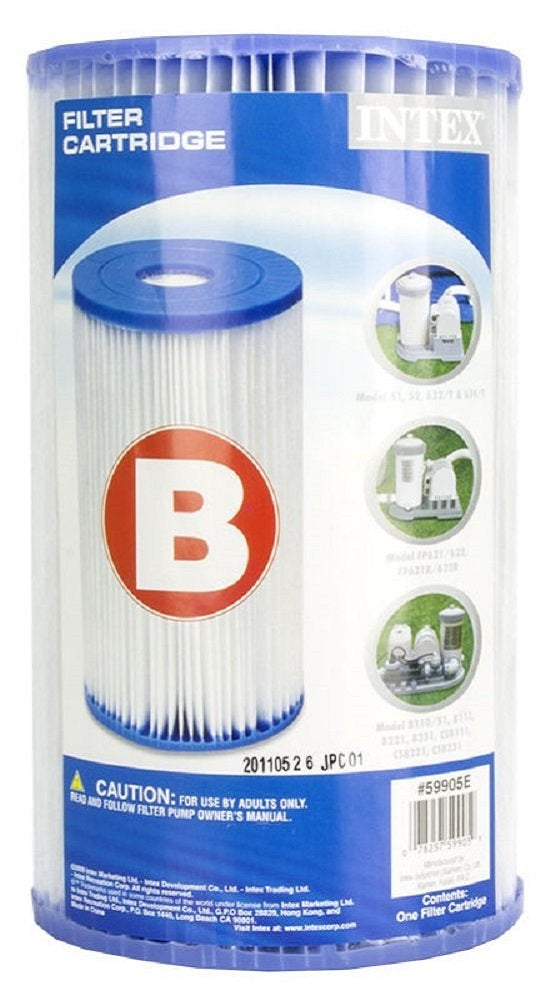 Intex filter cartridge - Cartridge B - to be used for the larger pools - 24 feet and largerEasy to clean dacron filter material. Shrink wrapped with litho label. Replace cartridge every two weeks. For filter pump item#56633/56634/56621/56622/56611/56612. Easy to change