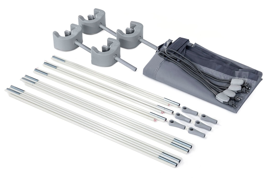 Take a break from the sun without having to leave the pool. Constructed of durable UV protected fabric, this canopy shade boasts a simple design that easily attaches to a range of above ground swimming pools. The sturdy construction withstands wind speed up to 16 3/8 FT Features: UPF 50+ Rated UV protection. Simple setup – easily attaches with clamps....