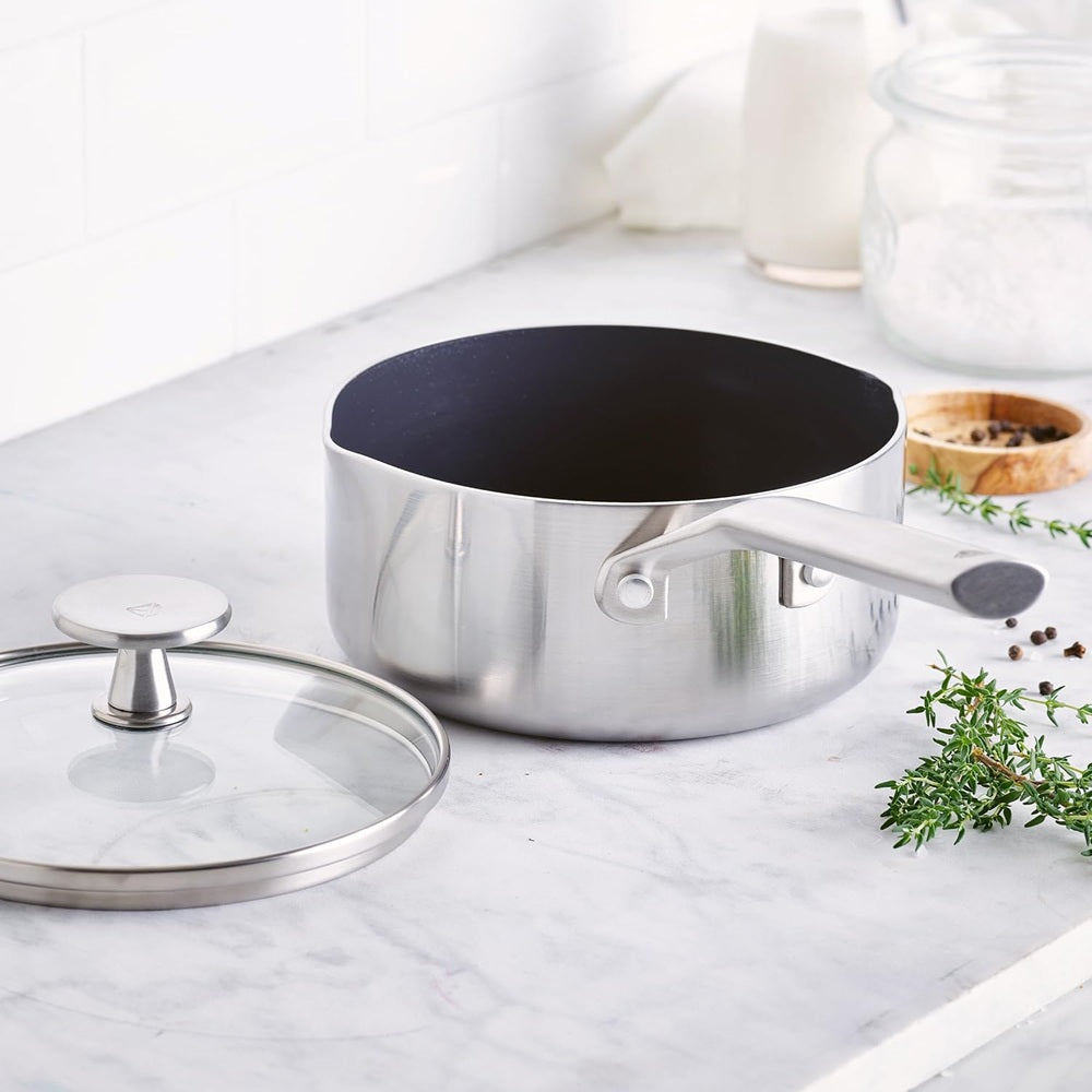 The Soft Grip collection is all about comfort and control. Designed for effortless performance and cleanup, this set features our toxin-free Thermolon nonstick coating, which is free of PFAS, PFOA, lead, and cadmium. GreenLife’s healthy ceramic nonstick is not stuck in the past—that’s why our ceramic nonstick starts with sand and creates 60% less CO2 emissions during the curing phase...