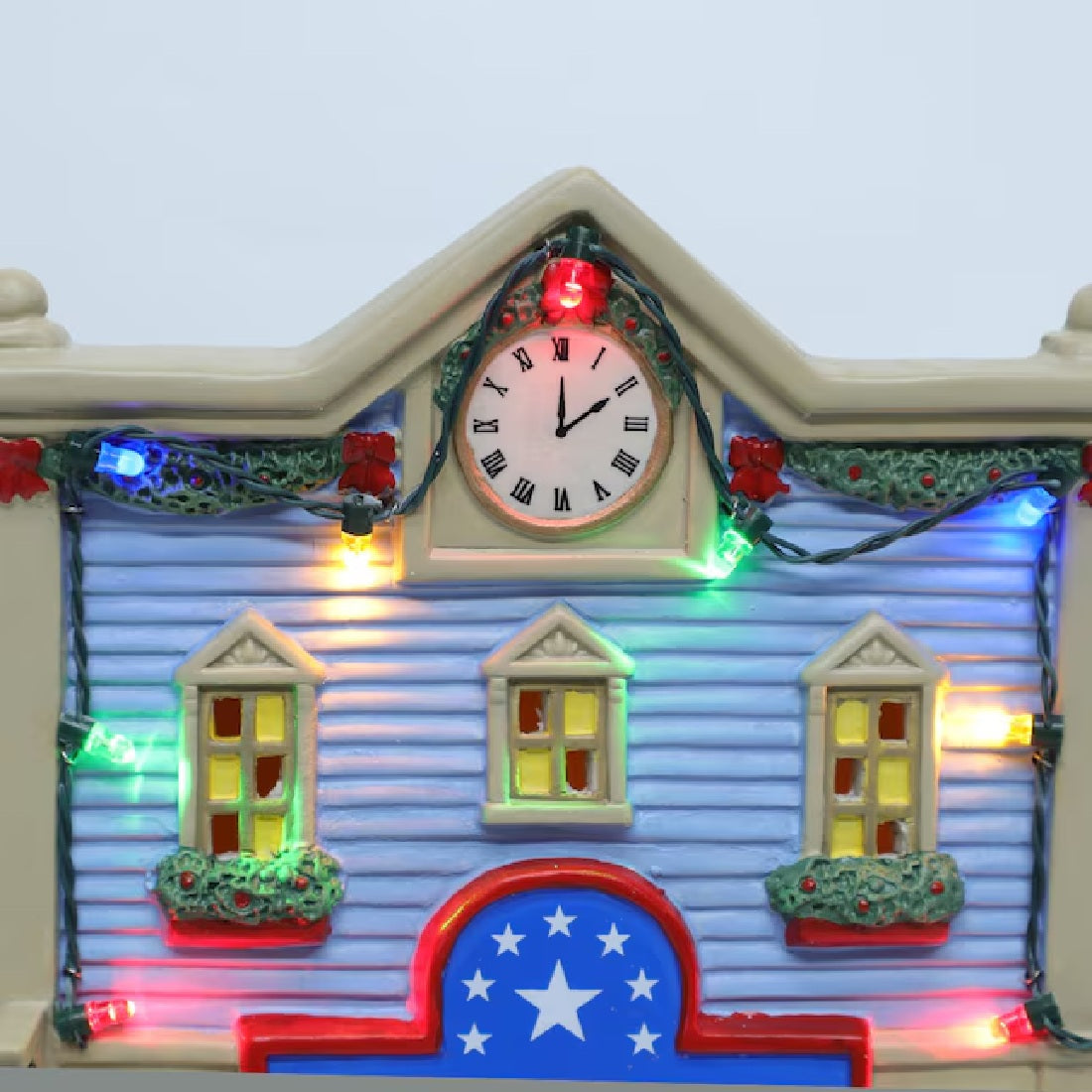 At the Town Post Office, wishes are wrapped in love and sent on a journey of festive magic. In the heart of this charming town, the post office is more than a place - it is a portal to holiday joy. Send your season's greetings with a touch of warmth, seal your messages with the spirit of giving and witness the transformation as your sentiments become part of the town's holiday tapestry. Every letter carries the promise of a magical holiday season. The material is resin. It is not a toy, for indoor use and decoration only. Released in 2024. Indoor use. LED Lights. Corded. Dimensions: 8"L X 5.7"W X 9"H