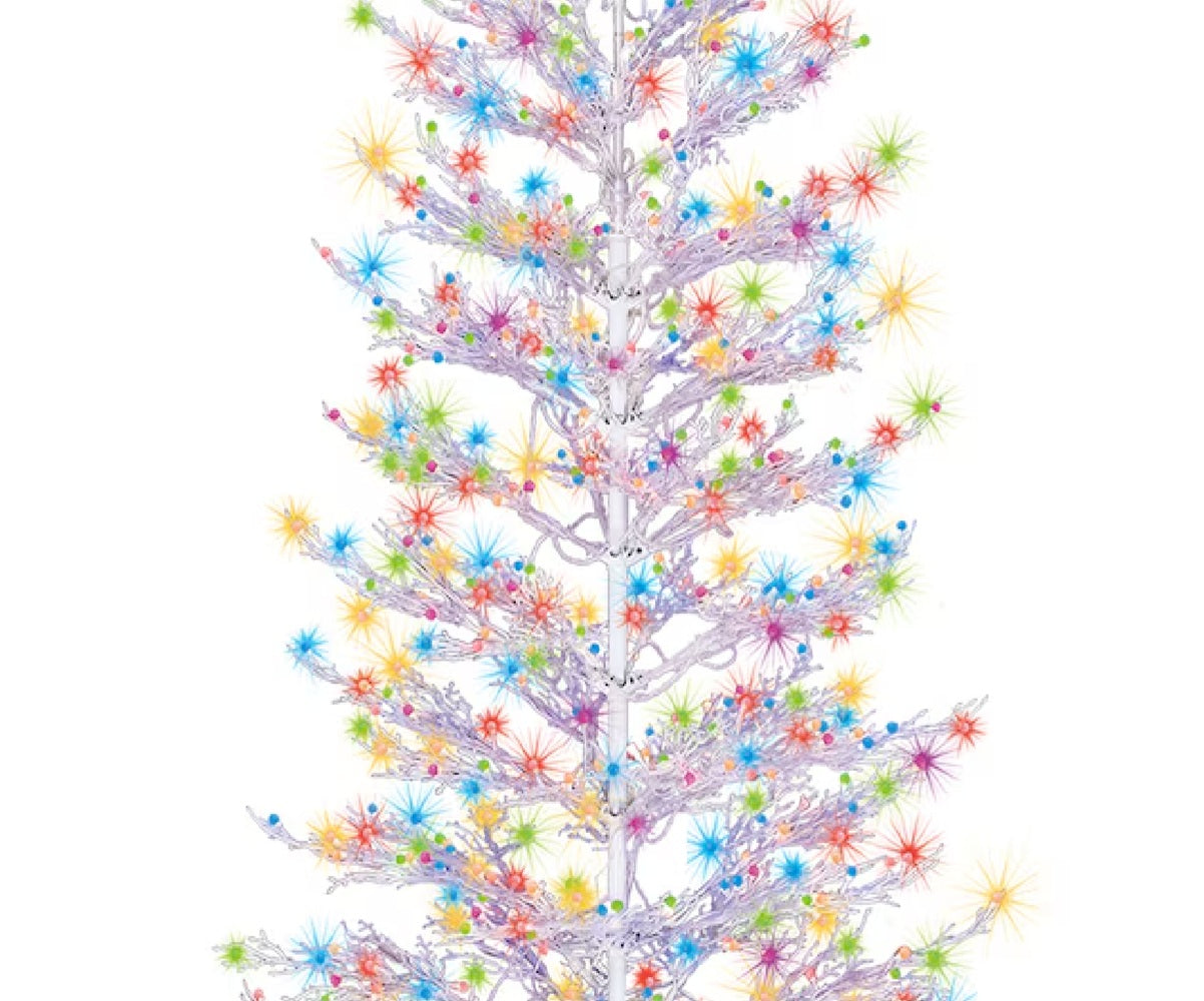 GE 5-foot white Winterberry branch tree pre-lit with 300 Color Choice LED MicroBright color changing lights (choose between white or multicolor), realistic looking white berry branches, 388 branch tips, hinged construction, and 40-Inch tree diameter with metal tree stand and stakes. For indoor and outdoor use. 3-Piece easy assembly. Indoor and outdoor use. 8-1 Lighting effects. choose between multi color,...