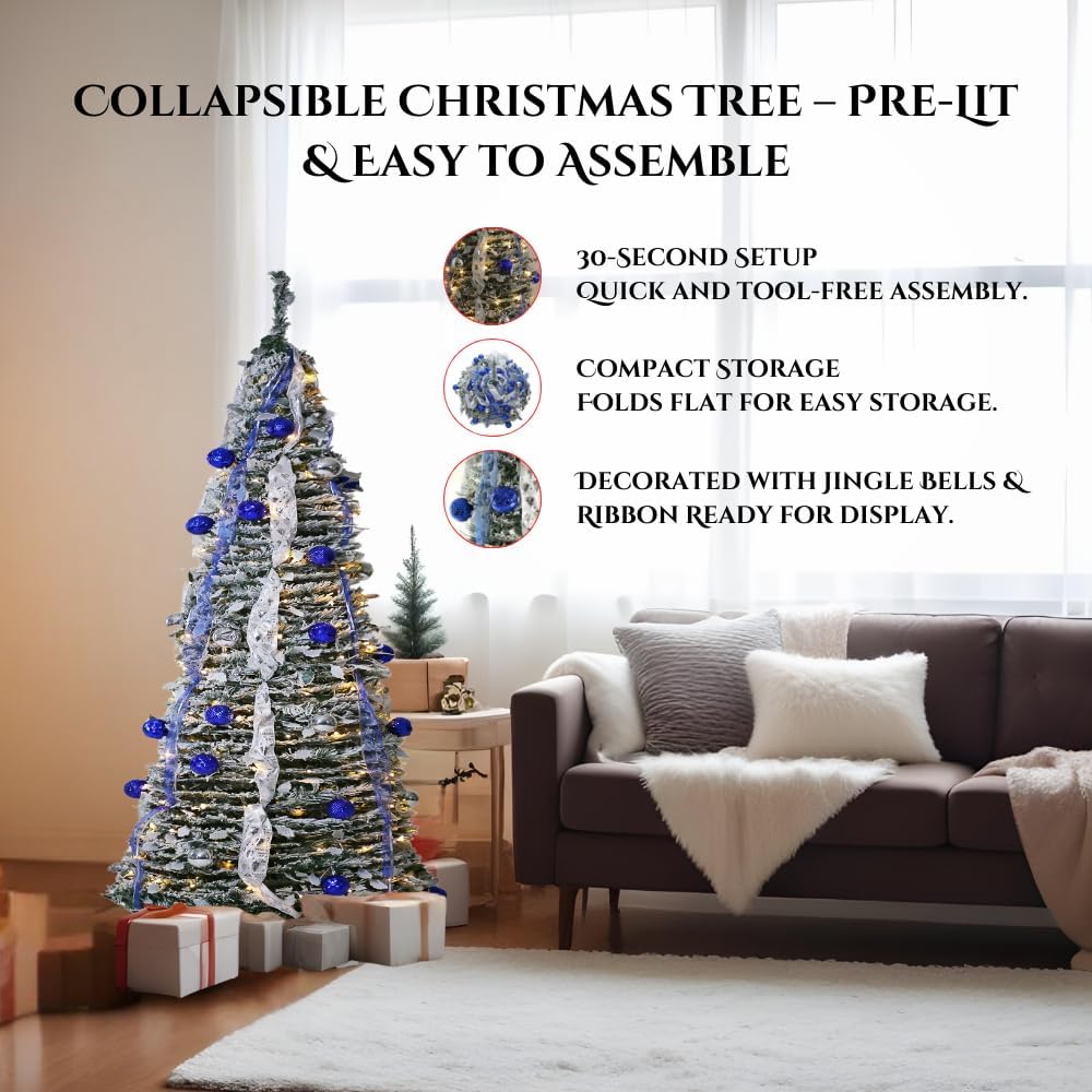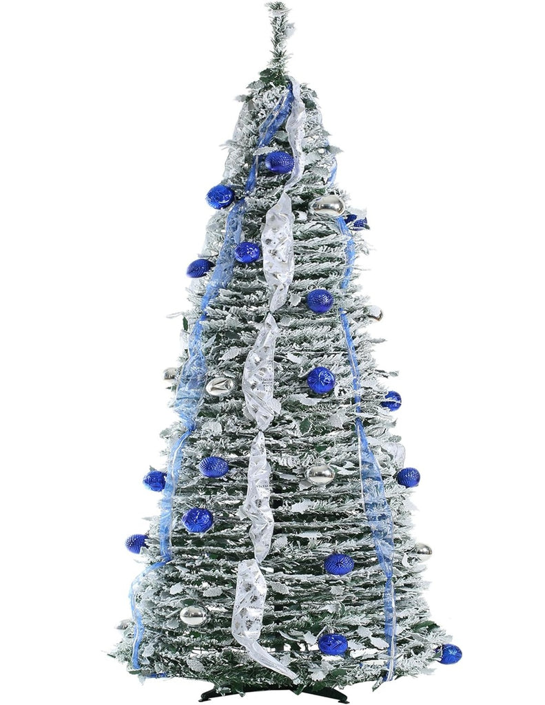 Crafted from high-quality polypropylene (PP) material, this 6ft artificial Christmas tree boasts realistic, full branches that closely resemble a natural tree. The durable construction ensures the tree maintains its shape and beauty season after season. The tree comes beautifully pre-decorated with a selection of blue and white hanging balls, perfectly arranged to create a harmonious and festive appearance. These elegant...