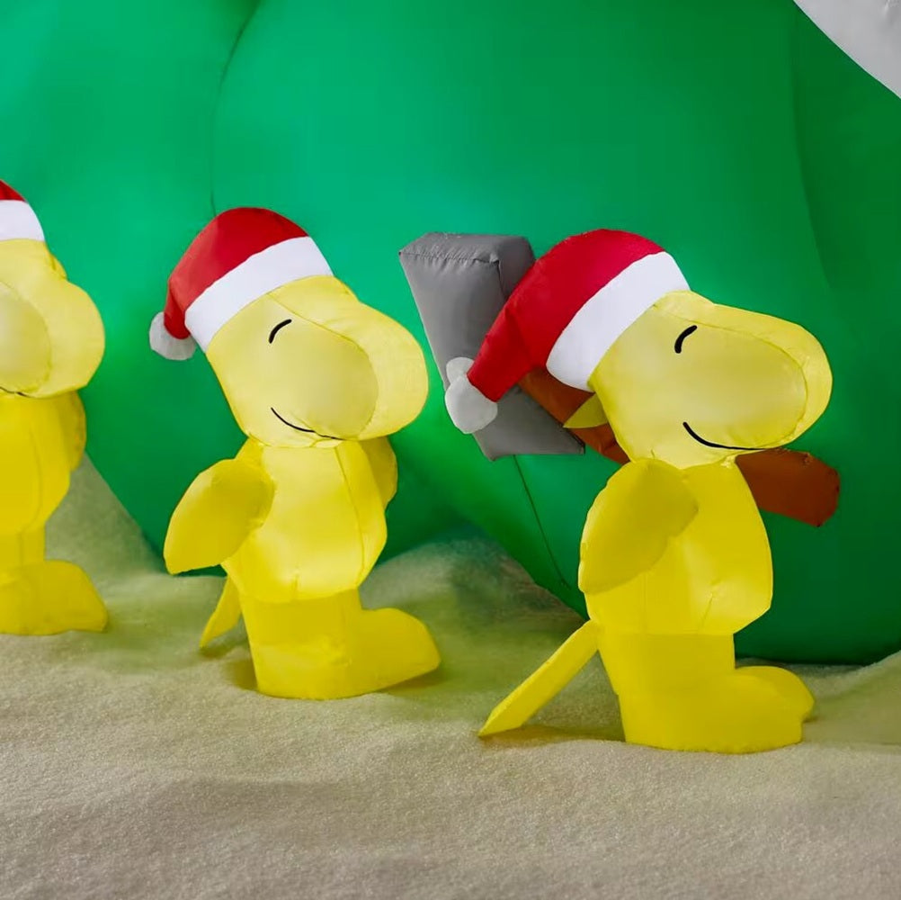 Create a fun, memorable holiday scene in your home or yard with this 7 ft. W LED Snoopy Pulling Christmas Tree with Woodstock inflatable from Peanuts. Peanuts fans will love this inflatable featuring Snoopy and 4-little Woodstock characters wearing Santa hats carrying a Christmas tree. The self-inflating design with stakes and tethers included allows effortless setup. Activate the integrated LED...