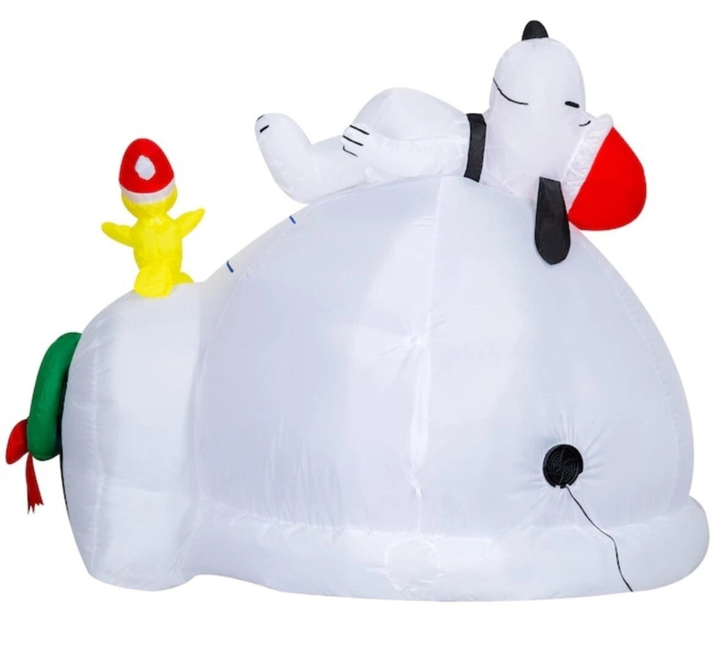 Peanuts fans will love this adorable Inflatable Snoopy and Woodstock igloo scene! Featuring Snoopy reclining on an igloo with a candy cane in hand, this amazing Peanuts Christmas inflatable includes Woodstock in a Santa hat and a wreath at the entrance. It makes a spectacular addition to your indoor or outdoor Christmas decorations. Set up is a snap for the...