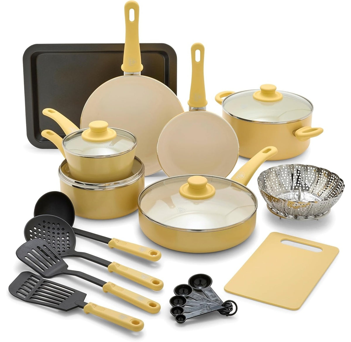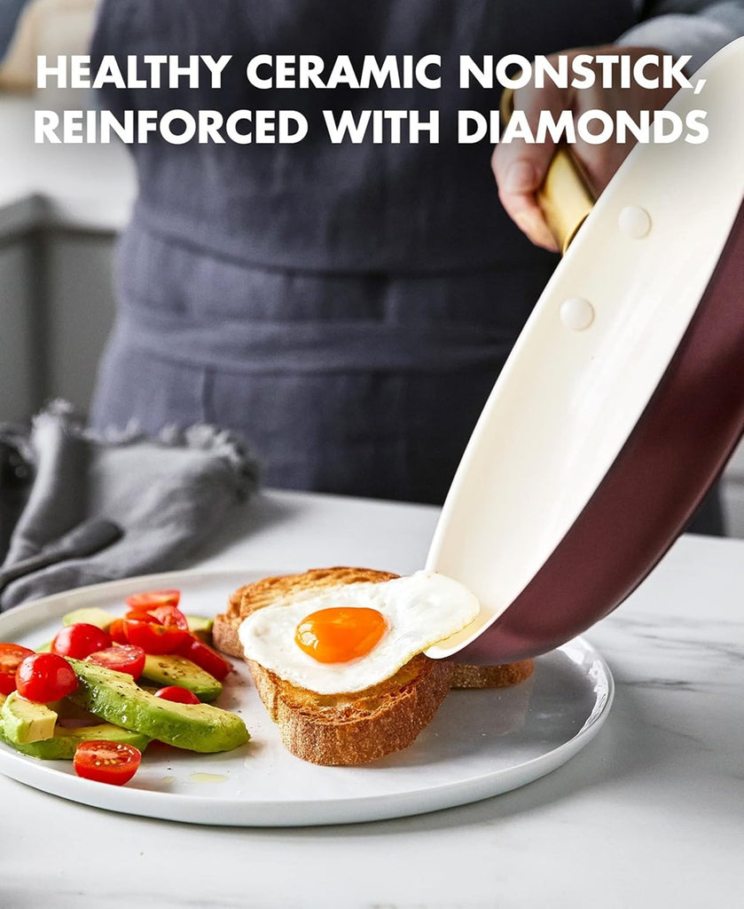 The Soft Grip collection is all about comfort and control. Designed for effortless performance and cleanup, this set features our toxin-free Thermolon nonstick coating, which is free of PFAS, PFOA, lead, and cadmium. GreenLife’s healthy ceramic nonstick is not stuck in the past—that’s why the ceramic nonstick starts with sand and creates 60% less CO2 emissions during the curing phase...