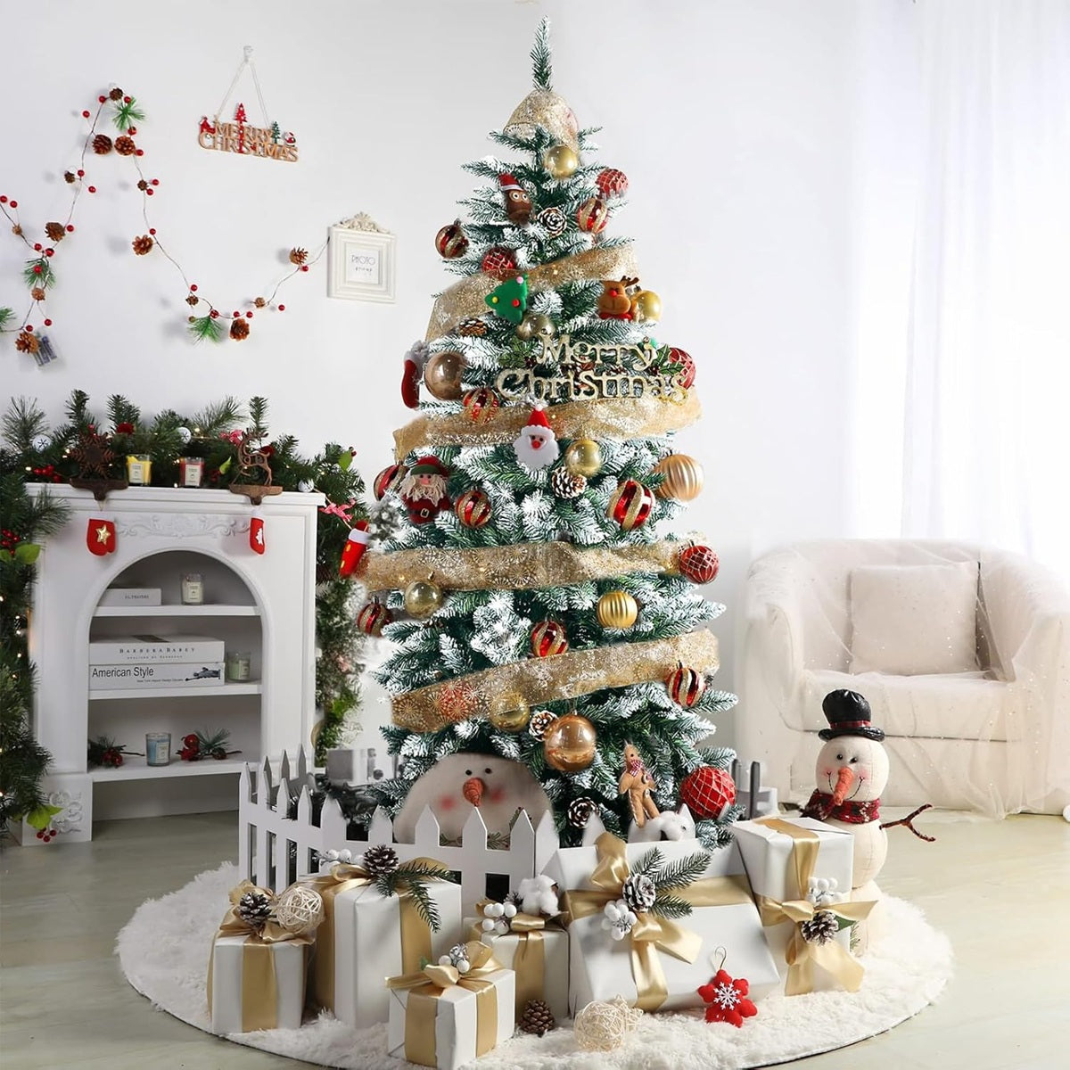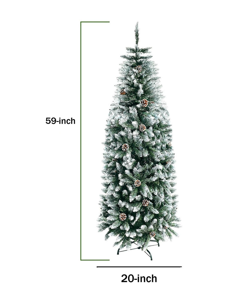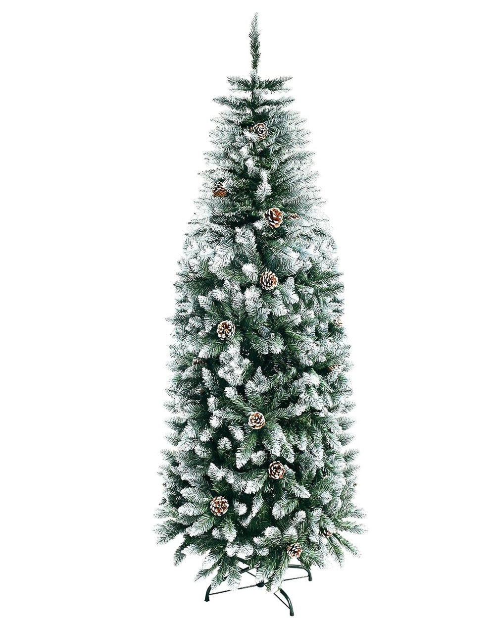 Add elegance to any room with the Mupera 5FT Snow Flocked Slim Artificial Christmas Tree with Metal Stand. The slim pencil Christmas Tree features a special flocked snow design that creates a unique wintry feel, bringing the snowy atmosphere indoors. The addition of 28 pinecone decorations adds realism and enhances the overall look of the tree. With 400 branches, our...