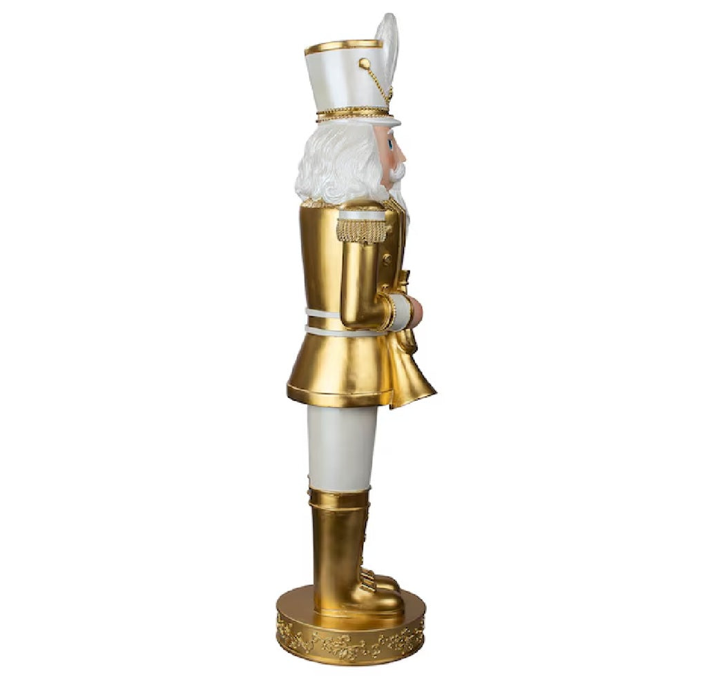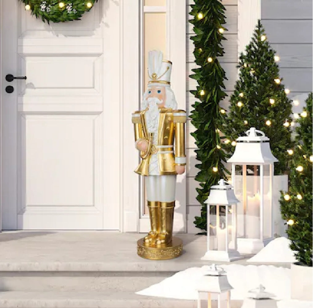 The Holiday Living 3-FT Freestanding Nutcracker Holiday Decoration stands at 36-inch. The nutcracker is hand-painted in gold and white nutcracker. It is made of durable resin, suitable for indoor/covered outdoor use. The elegant festive nutcracker icon is a great addition to your holiday decor. Set outdoors to make your holiday scene or indoors next to your tree or even on...