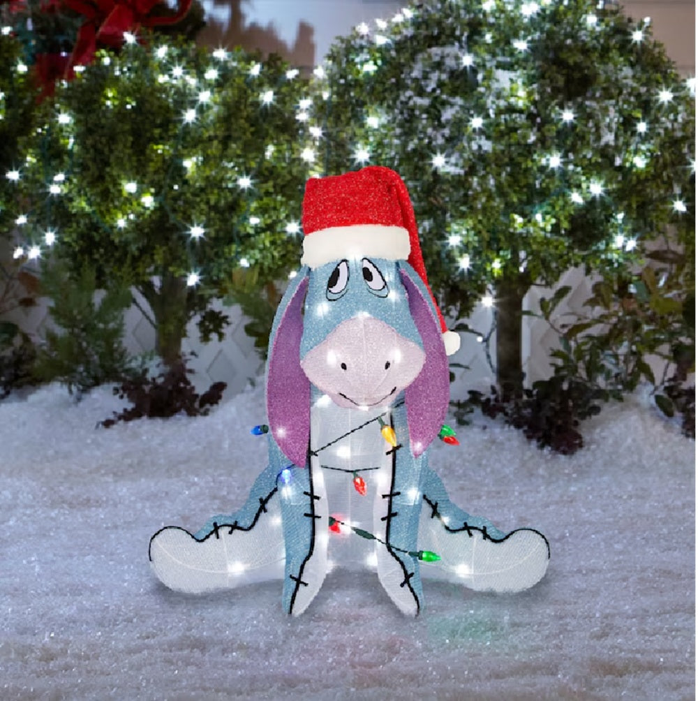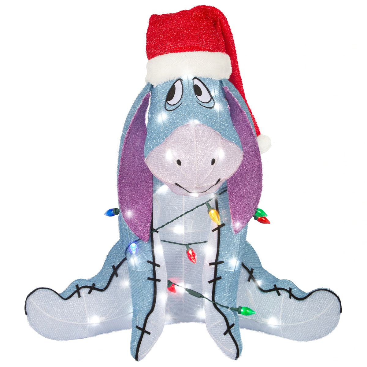 Fans of Winnie the Pooh will love this lighted Eeyore Christmas yard decor! The lighted Eeyore Character makes a delightful addition to your indoor or outdoor Christmas decorations. Featuring Eeyore wearing a Santa hat and wrapped in a light string, this 3D Winnie the Pooh yard sculpture is made with soft, fuzzy material that creates a tinsel effect. Our lighted...