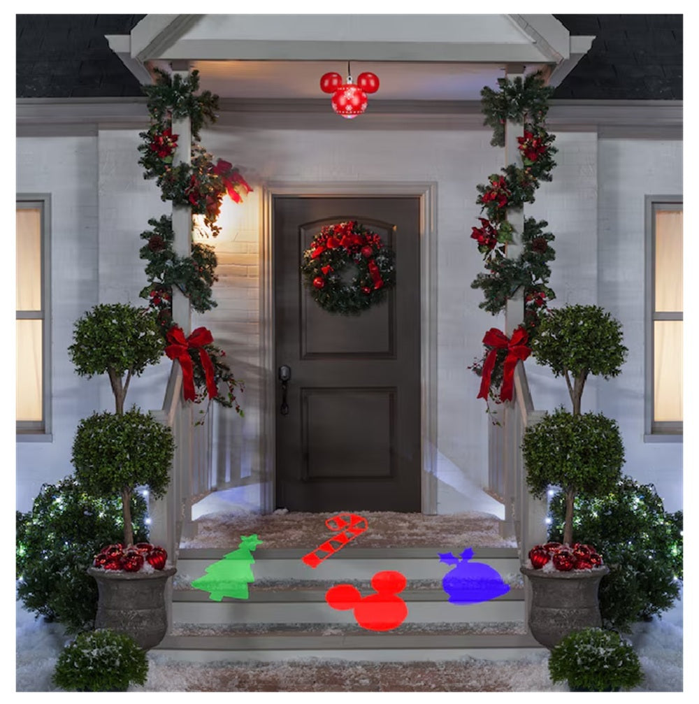 Create magical holiday lighting instantly with the Mickey Mouse Hanging Projection Ornament. Featuring a red ornament in the shape of Mickey Mouse's head with snowflake accents, this LED Whirl-a-Motion Hanging Lawn Ornament displays whirling Christmas icons in red, green and blue. Uniquely made to hang from trees, rooflines or porches, this stunning Christmas spotlight projects down to light up lawns,...