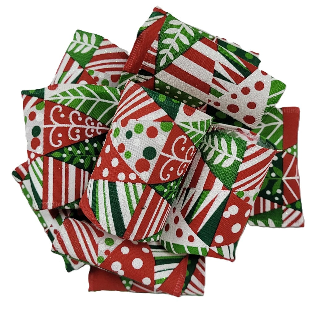 The Wire-Edged Christmas Triangles Ribbon in Red, Green, and White is a beautiful spool of ribbon to create beautiful bows for your Christmas gifts or to adorn your Christmas tree, mantle or stairway. This premium stylish holiday ribbon has been carefully selected. This multicolor ribbon features red, white and green triangles is high-quality, finish-stitched edges. Made from durable, fine polyester...