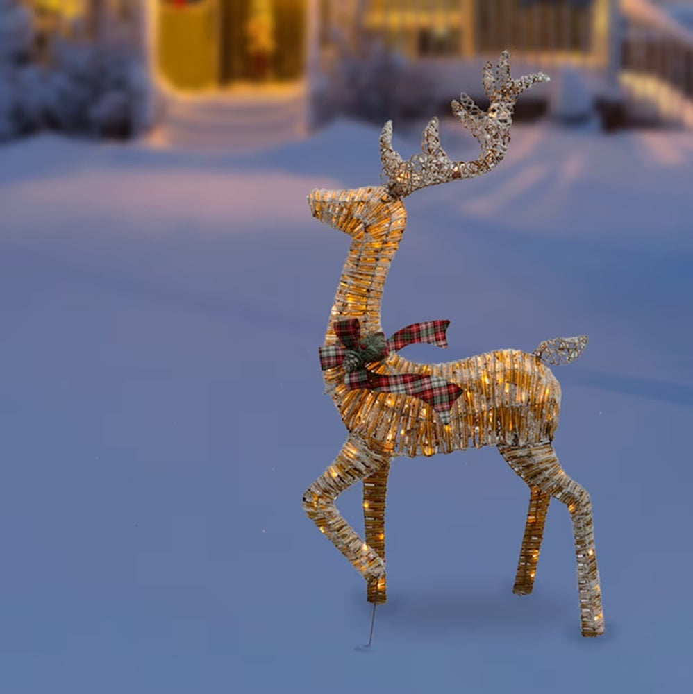 Create a captivating holiday display with the Holiday Living 5-Foot Rattan Buck Free Standing Christmas Decoration. This free-standing buck decoration transforms your indoor or outdoor space into a festive wonderland. Stand it alone or add it to other rattan decorations for a mystical scene. Adorned with a plaid, festive bow, this buck is perfect for indoor or outdoor decorating. Weather...