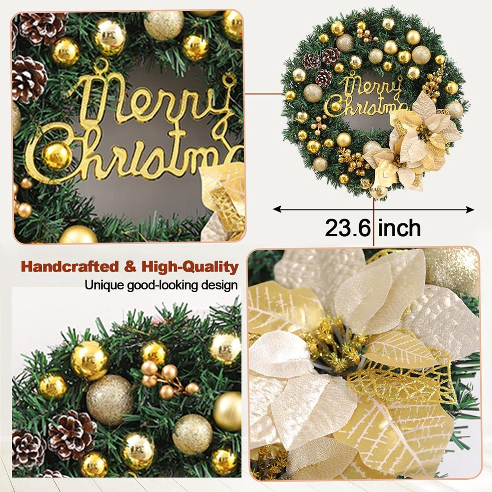 Each 24-inch Artificial Pine Christmas Wreath With Gold Christmas Balls is handmade by skilled artisans who pay attention to every detail to ensure the uniqueness of the Christmas wreaths. The pine tree Christmas wreaths are made from real evergreen branches and pine cones, which are both eco-friendly and naturally fragrant, bringing the essence of the season into your space, outdoor...