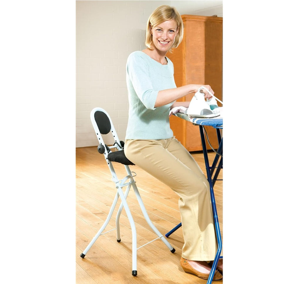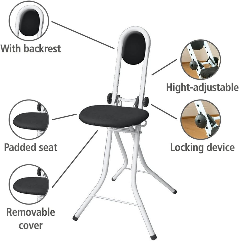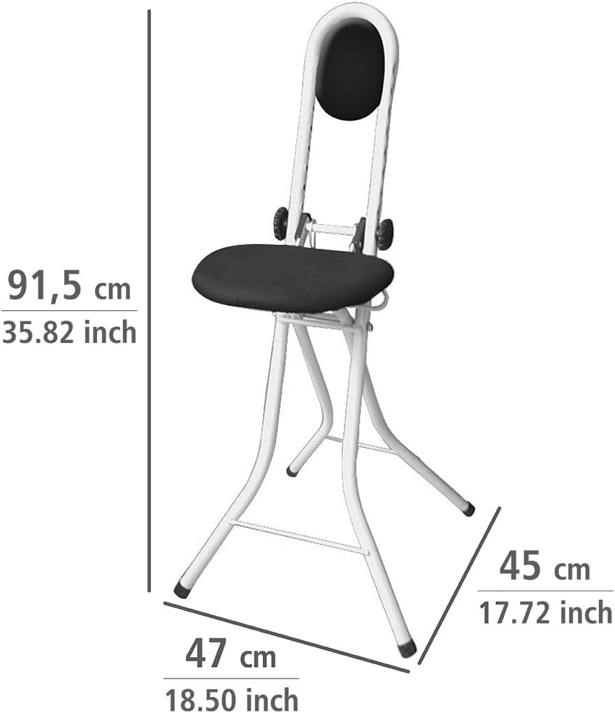 The folding chair from WENKO reliably supports you in all time-intensive jobs, such as ironing, cooking or working at a height-adjustable desk. The seat can hold up to 220 lbs. The practical tall desk chair can be easily adjusted in height from 22.8 to 26 inches thanks to the included locking screw and thus adapts to different body sizes or...