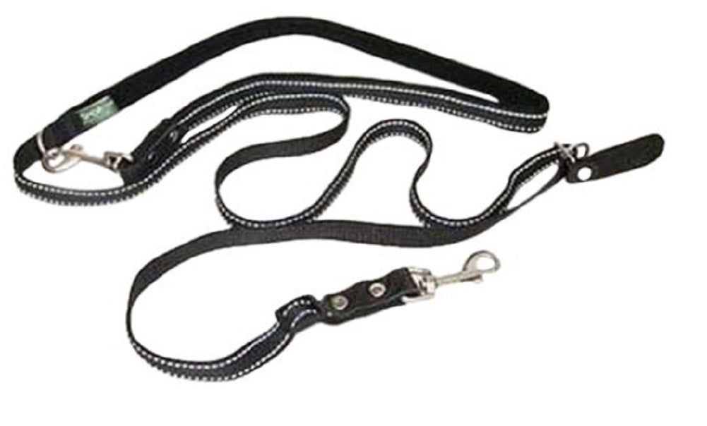 The SPORN Multi Control Adjustable 1" Black Leash Medium/Large (4-7 feet) has reflective stitching to keep the dog walker safe. The 1" SPORN leash features 3 uses in 1. First Slide the D-ring in either direction, and attach strap to adjust from 4 to 7 feet in length. Second For use as a tie-out, or belt leash, adjust length and...