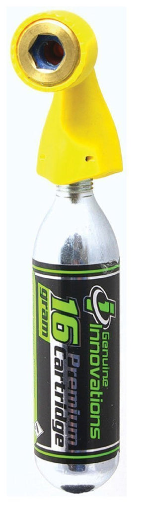 The Genuine Innovations Mini C02 Tire Inflator features simple, twist-to-inflate technology that provides fast, easy, and controllable C02 inflation. Just thread a cartridge onto the C02 bicycle tire inflator, tighten until the cartridge is pierced, press the nozzle onto the valve, then twist the cartridge to release the gas into the tire. It takes only seconds to fill your tire...