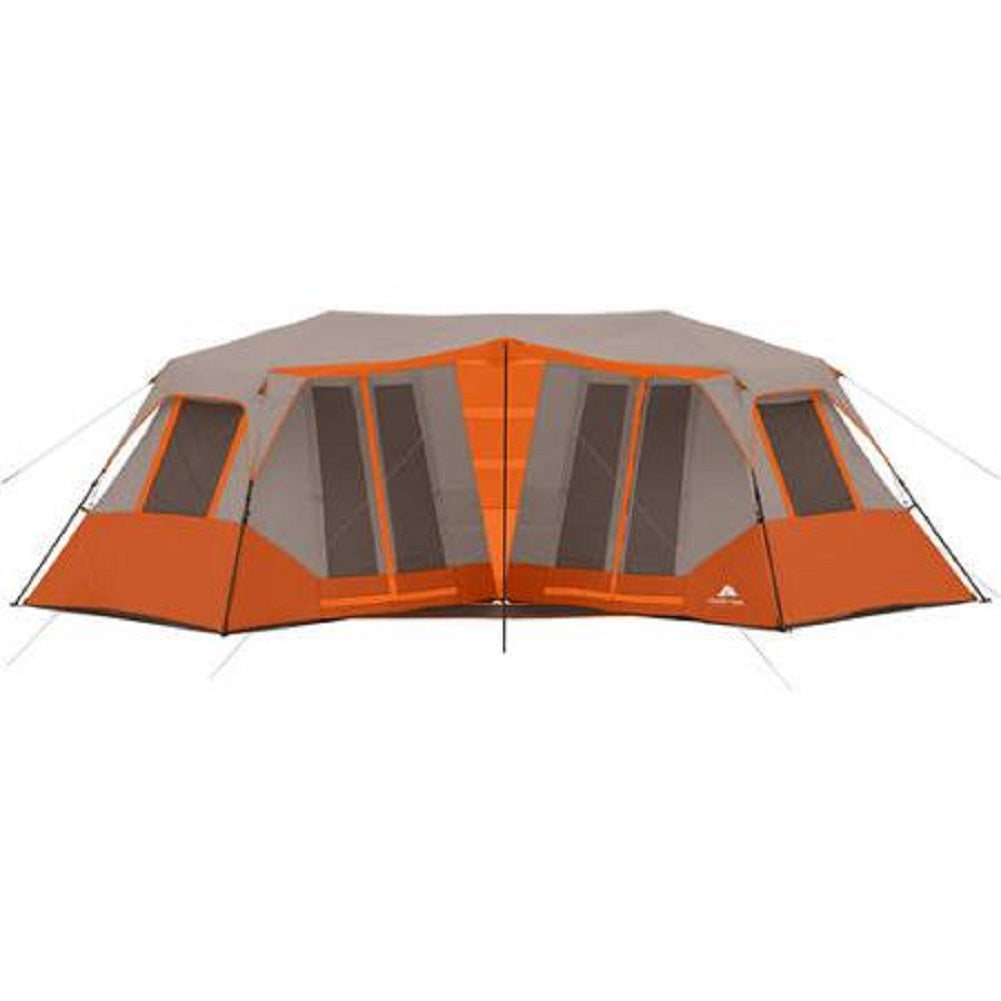 The Ozark Trail 23' x 11'6' Instant Double Villa Cabin Tent has a unique structure with two rooms connected by a large gear organizer and covered front and back porch spaces. This double cabin-style tent has a 76-inch ceiling height for ample headroom and has 10 large windows and mesh panel ceilings for amazing views and great ventilation. Setup takes...