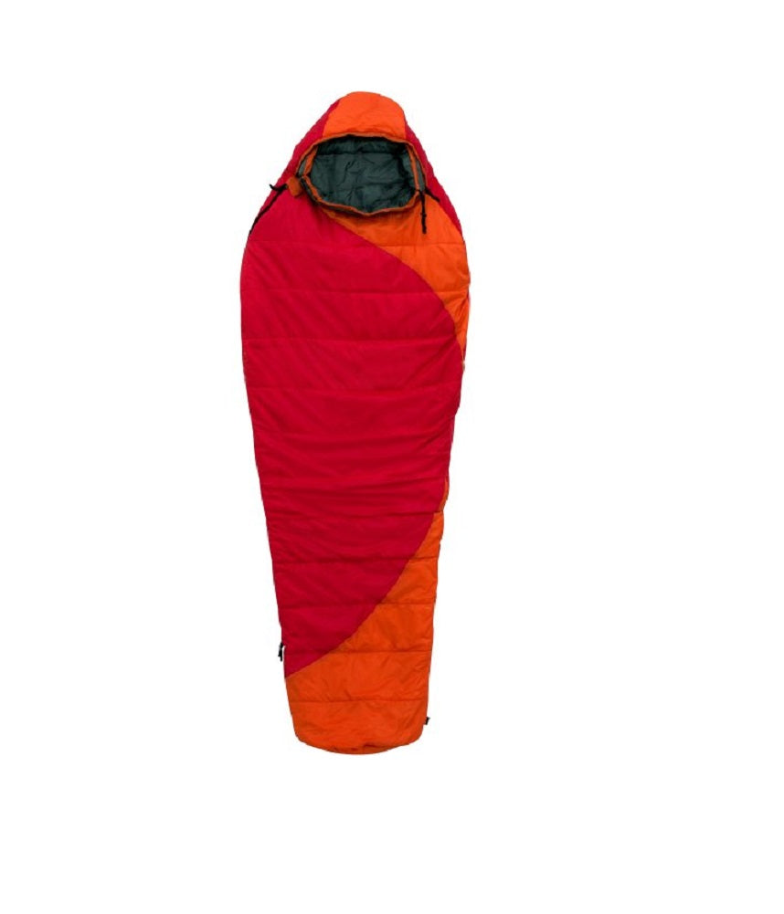 The 50F Ozark Trail Thermolite Quallo Mummy Extra Long Sleeping Bag, Red/Orange, is designed with extra room to stretch out. Thermolite Quallo insulation is engineered with seven-hole fibers to provide more warmth even when wet and dries three times faster than down. The mummy shape further enhances warmth using your body's own thermoregulation. This oversized bag balances price and performance...
