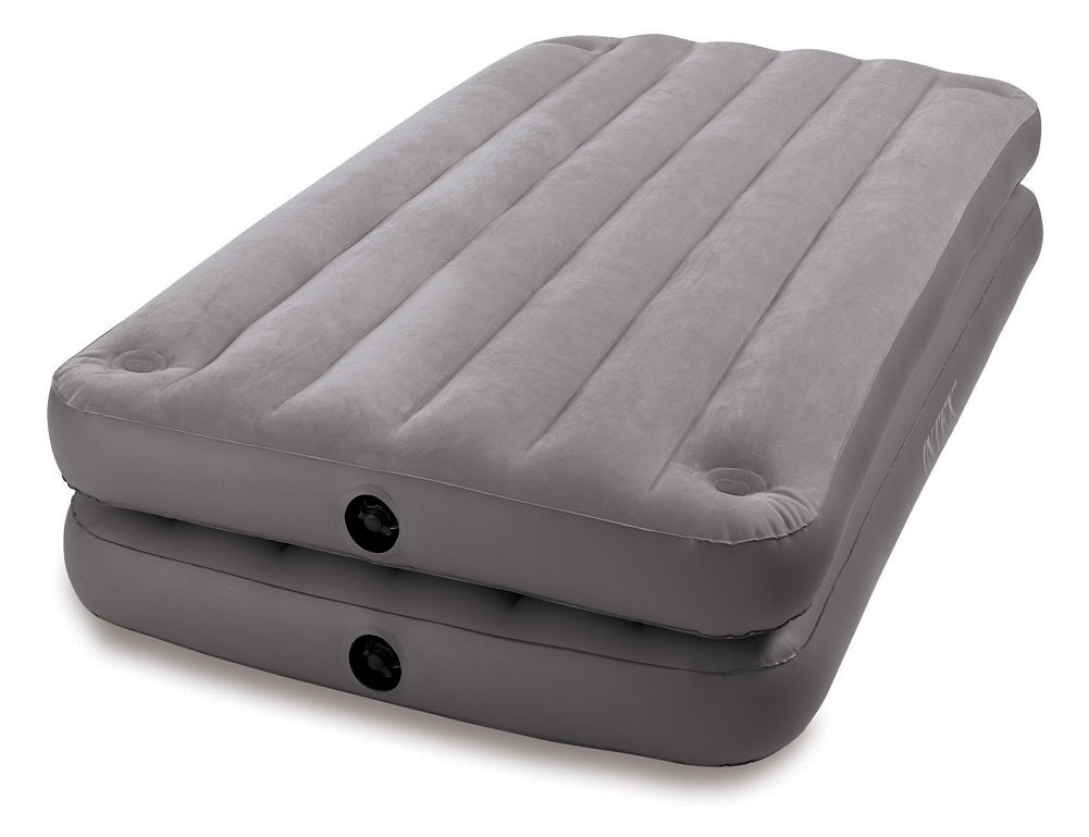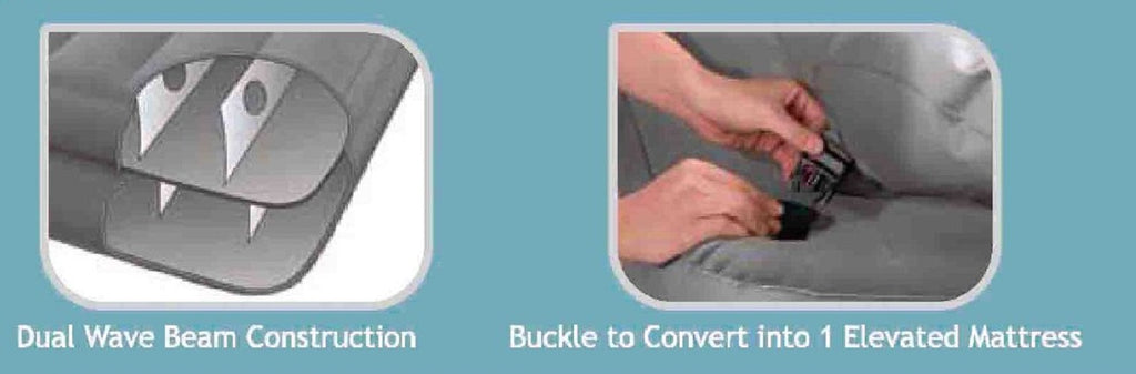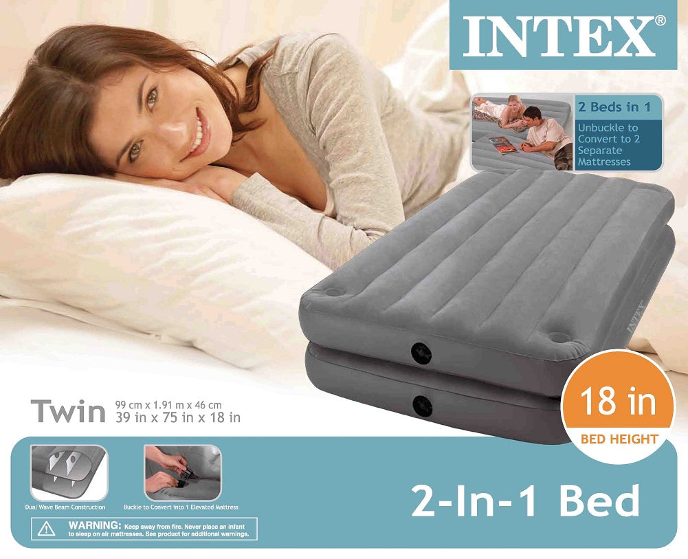 Incredibly easy to maintain and is the perfect bed for house guests and kids sleepovers and family camping trips Two beds in one attached by four snap-buckles Quality tested 20.8 gauge waterproof flocked top with 15 gauge sides and bottom 39" x 75" x 18" (99cm x 191cm x 46cm) 2 in 1 valve has extra-wide openings for fast inflating...