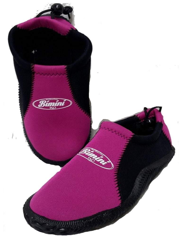 The Bimini H2O Gear Water Shoes Aqua Socks, Black/Pink Size 6, is made of synthetic and nylon. These comfortable shoes are great for pool, beach, surf, water country, yoga, and exercise. With a durable TPR outsole. Adjustable back cord. Mesh top for dryness and breath-ability. Product Details: Adjustable tight cord in a back for conform tightly to your fit. Skid-proof...