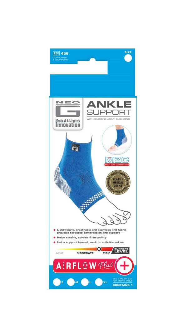 The unisex, medical grade Neo G Airflow Plus Ankle Support, Large, fits the Left or Right ankle and provides a snug yet flexible fit for targeted compression and helping to warm muscles. This dynamic support helps relieve symptoms of strains, sprains and instability as well as supporting injured, weak or arthritic ankles. Key features include dual sided silicone joint cushions....