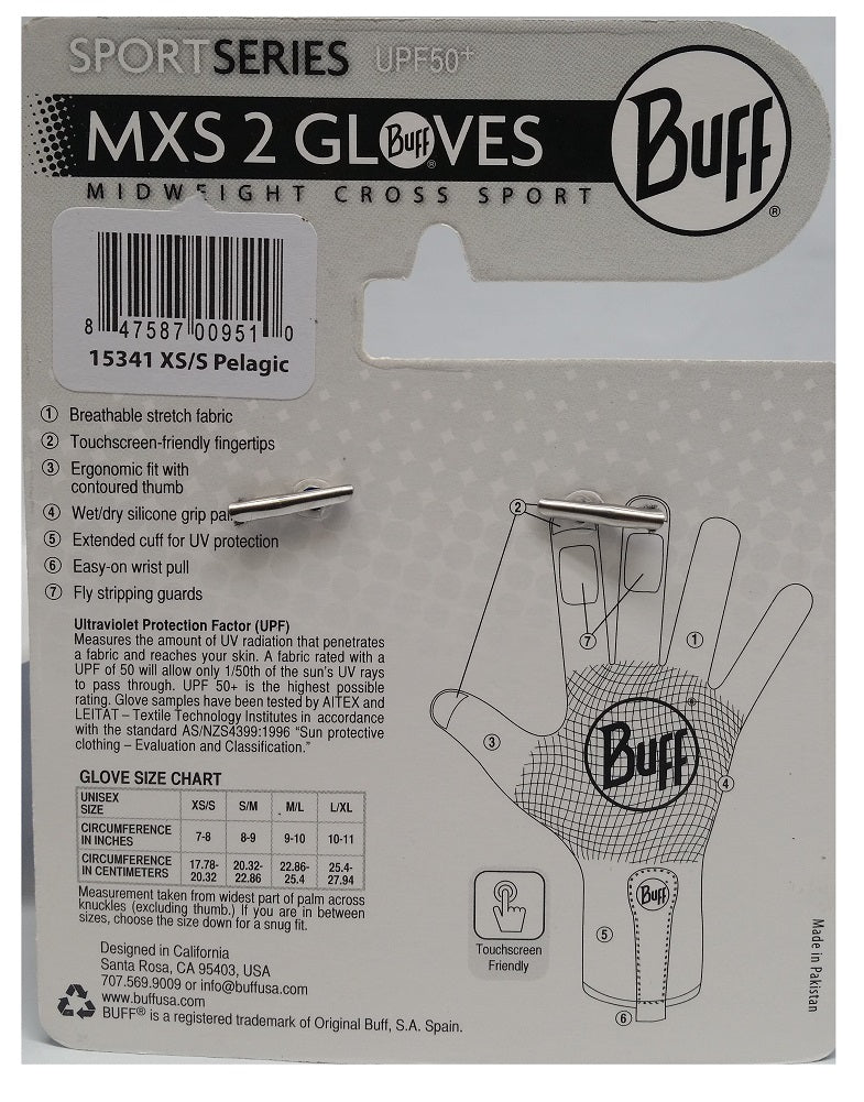 Protect your digits with the Buff Sports MXS 2 Gloves Midweight Cross Sport Pelagic, XS/S, ideal for fishing, hunting or paddle sports, especially in cooler weather. Featuring new pre-curved thumb fit, touchscreen friendly fingertips, and improved silicone on the palms for a sticky grip, these gloves will quickly become essential gear. Product Features: Sport MXS 2 Gloves. Breathable stretch fabric....