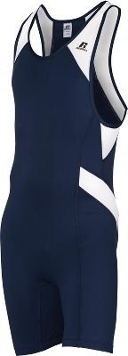 The Russell Athletic Men's Wrestling Sprinter Singlet Suit Medium Navy Blue/White is perfect for the beginning wrestler to experienced. The material is comfortable with durable nylon and spandex, large arm holes for maximum range of motion and 3/4" gripper elastic around each leg opening to minimize riding up. The singlet is royal with white on the shoulders and hips. The...