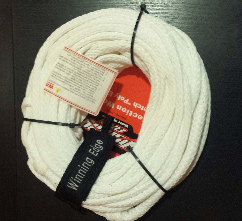 New Winning Edge 70' 5-Section Wakeboard Low Stretch 'Poly E' tow Line. Competition Low Stretch Poly 'E' for Stretch and High Performance. Attaches to your 5' Handle Section w/ End Loop. Loop at each end of each section for easy connection. Any Combination of section can be configured to obtain optimum distance behind boat in 5' increments, Adjustable from 40'...