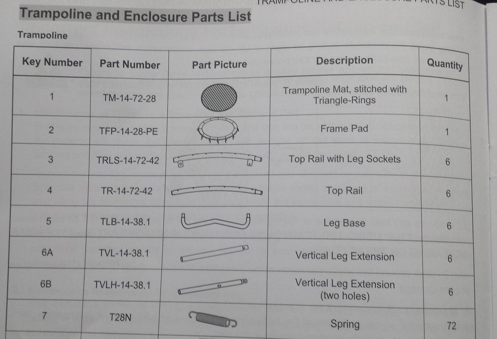 ***NO RETAIL BOX Replacing a whole trampoline can be expensive. Skywalker Trampoline parts work with 15-feet round trampolines. The Skywalker 15' Round Replacement Trampoline Part, Leg Brace measures 47.5" Length x 15.75" Height x 1.75" Width. Product Details: Skywalker Trampoline. 15' Round. Part List Description: Leg Brace ("W" Shape Leg). Key # 4. Sold in quantities of ONE. (Six (6)...