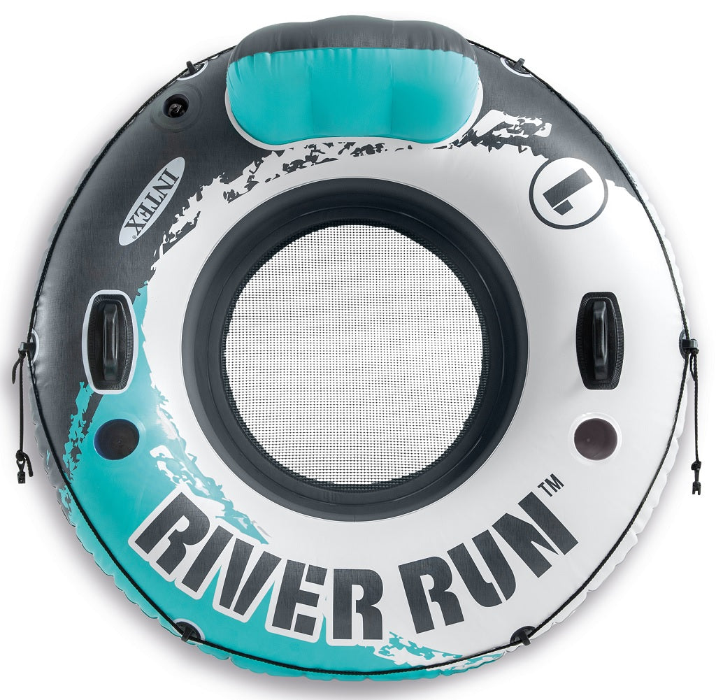 The Intex Aqua River Run inflatable tube (3-Pack) is designed to fit an adult and it's perfect for tubing down the river, in the lake, or in the pool. The River Run tube is designed for high-performance fun. The bottom of the tube has a mesh layer where the water keeps you cool in the sun. The cup holders and backrest are added comforts on the water. The 18-gauge (0.46mm) vinyl material is durable and cool to the touch. Features: Comfortable backrest and mesh bottom, 2 durable grab handles, 2 built-in cup holders, 2 easy-to-use connectors included to connect with other Intex floats. 53in diameter circle. Built with 18ga vinyl. Includes repair patch. Age grade: adult. 220 lb max weight limit.