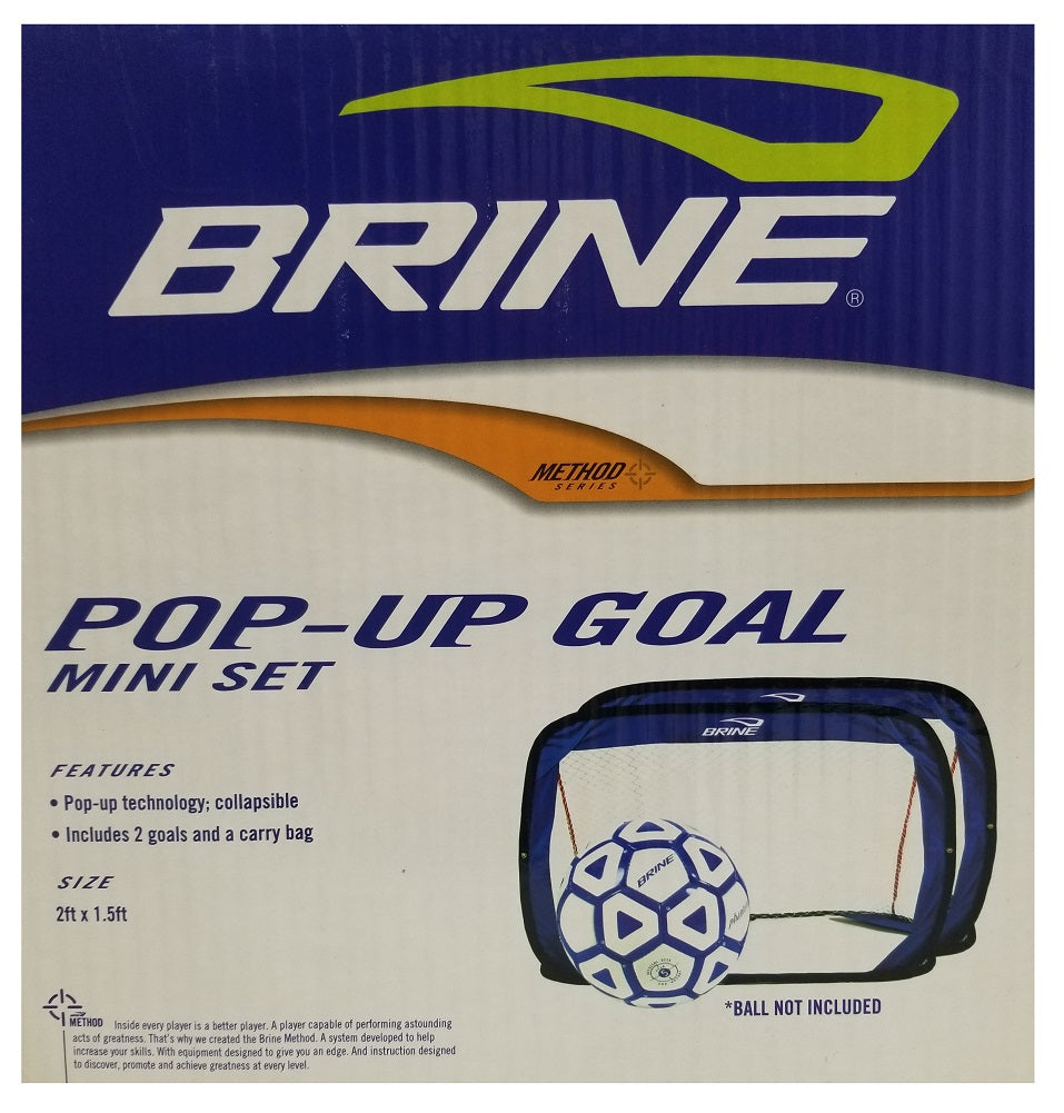 Getting ready for the big game just got easier. The Brine Mini Pop-Up Goal Set is perfect for practice drills and practices without goalies. Perfect for smaller soccer players, who want to practice. Each goal measures 2 ft x 1.5 ft. so they are easy to transport and easy to store when they are not in use. Ball NOT included....