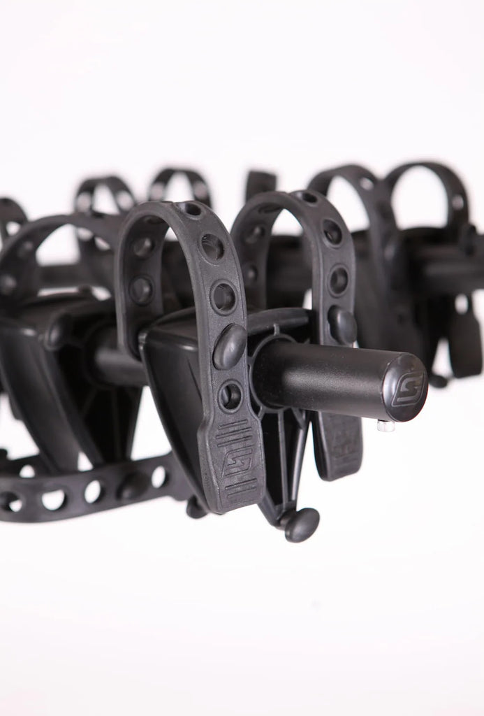 The Swagman TITAN 4 is a user friendly, lightweight hitch mount hanging bike rack perfect for occasional use. Building upon our popular Trailhead series, it has added features that make it even easier and more convenient to use. The TITAN 4 carries four bikes of most styles and sizes, with a maximum weight of 35lbs per bike. Anti-sway cradles help...