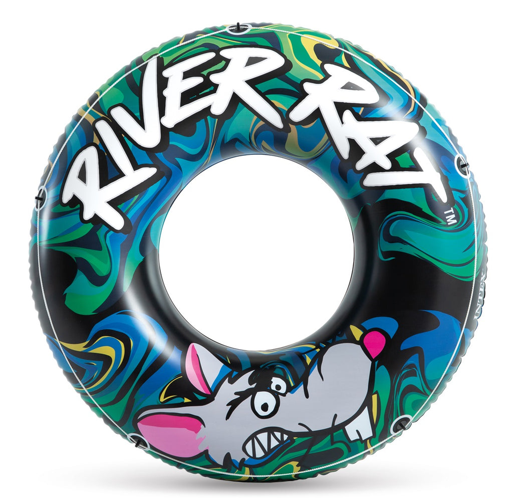 Enjoy floating around on our highly popular River Rat® inflatable swim tube. It's ideal for floating, swimming or playing with at the pool, beach, lake or river. Designed with bold stripes and a fun cartoon rat picture, this tube lives up to its name. Sturdy and durable, the tube is constructed with two air chambers with double valves, and an...