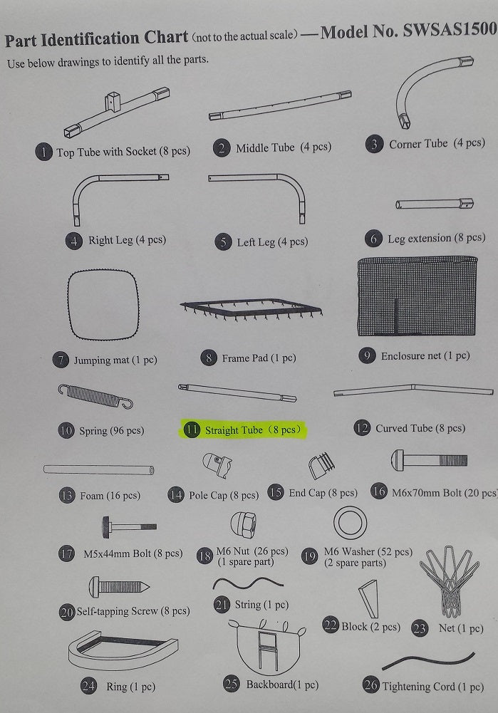 ***NO RETAIL BOX Replacing a whole trampoline can be expensive. Only replace the parts you need by purchasing Skywalker Trampoline parts. These parts work with the original manufacture parts. The Skywalker Trampoline 15' x 15' Replacement Trampoline Part, Straight Tube measures 40.5'" Length x 1.5" Width. One end is rounded and one end is square. Product Details: Skywalker Trampoline. 15'...