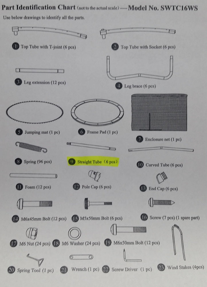 ***NO RETAIL BOX Replacing a whole trampoline can be expensive. The Skywalker 16' ROUND Replacement Trampoline Enclosure Part, Straight Tube, measures 40.5" Length x 1.5" Width. Product Details: Skywalker Trampoline. 16' Round. Part List Description: Straight Tube. Key # 9. One End is Square, the other end is Round. Sold in quantities of ONE. (Six pieces are needed to complete...