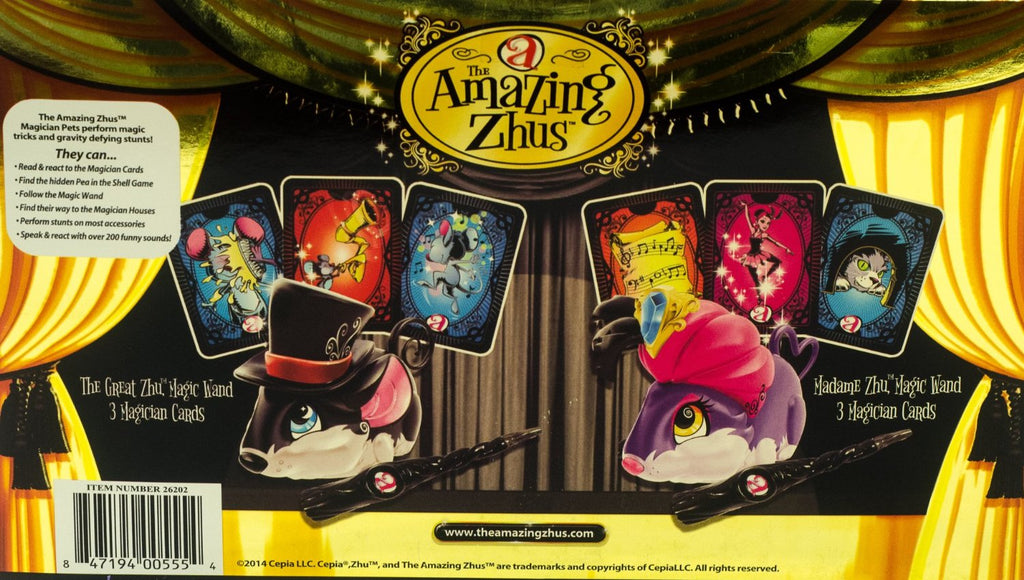 This Amazing Zhus" Magician Madame Zhu Interactive Pet will amaze you with her mystical abilities! Madame Zhu sees all - just look into her eyes and she will mesmerize you! Amaze your friends with this interactive toy's fantastic magic tricks and stunts! Astound your friends as Madame Zhu predicts the correct answer to the magician cards - every time! Point...