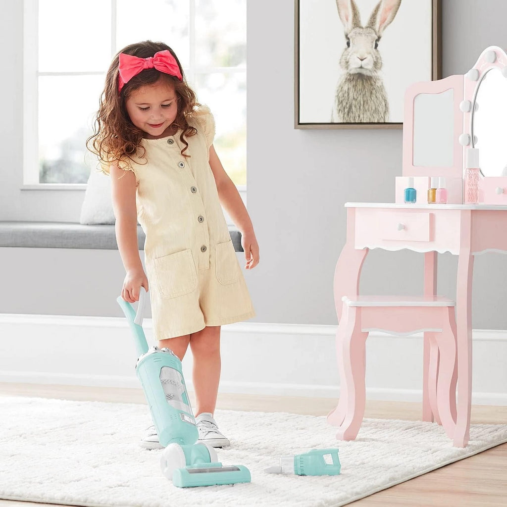 The PlayGo My Light Up Vacuum Cleaner with Light Up Hand Vac, White/Gray, is a realistic looking, upright vacuum with lights and sounds. Kids can push it to light it up with turning glitter flakes. Now kids can be pretend to be mom's helper and have a great time playing all at once with this vacuum play cleaner. This Kids...