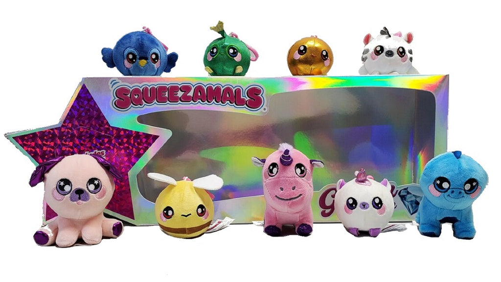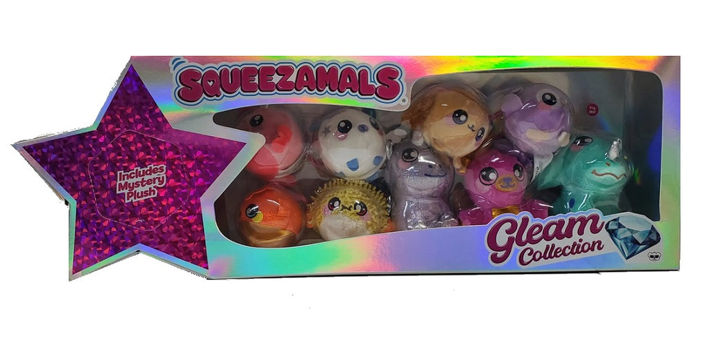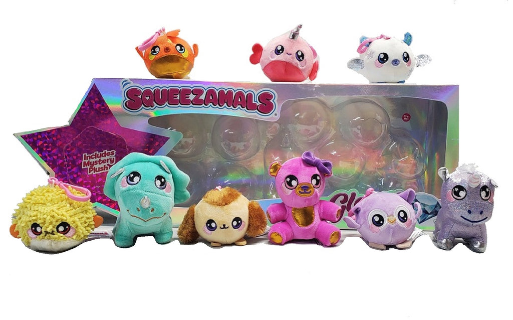 Ready, Set… Sqeeze! Squeezamals are as cuddly as they are cute! The Squeezamals Gleam Collection 10-Piece Diamond Stuffed Animals fun set includes ten adorable Squeezmal characters! Made of super soft spandex & polyester stuffing for crazy, cuddly fun. Makes a great gift! The Squeezmal set contains 3 x Squeezmals 3Deez 3.5 inch plus, 6 x Squeezamals 2.5 inch clip-on plush,...