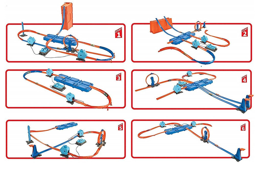 The Hot Wheels Stunt & Go Track Set With 10 Diecast Cars is an awesome rig that holds up to 19 cars, but look again, this is no ordinary hauler, this is a MOBILE PLAY SET— the first ever hauler with a loop! Snap the two sides of the loop in place and swing out the collapsible launcher, then pull...