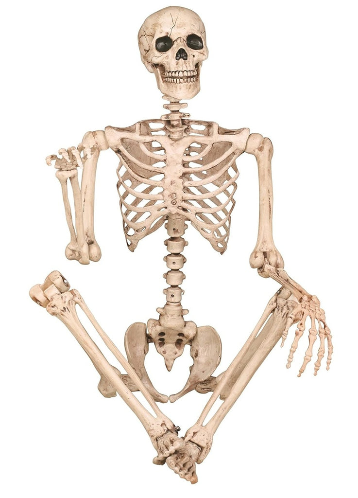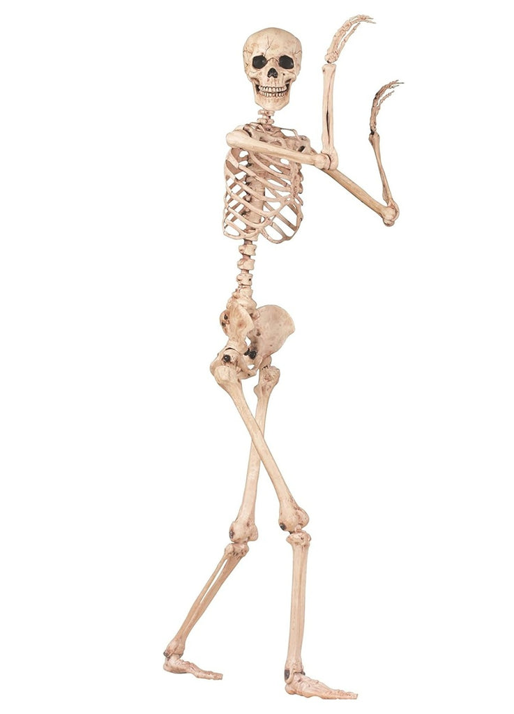 No haunted house is complete without a Crazy Bonez skeleton in the closet! Crazy Bonez stands approximately 60" Tall and features realistic molded bones. The detailed bones include a full rib cage, spine, arms and legs, and skull with a movable jaw. Crazy Bonez limbs are poseable, with knees that lock into place to hold a position. Will stand erect...
