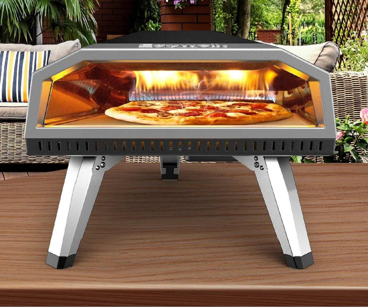 ECOWELL gas pizza oven has high heat energy-4.4KW and 15000BTU, preheats to 572℉ in just 12 minutes at the maximum flame. And ECOWELL propane pizza oven can reach a maximum temperature of 887℉, make authentic 12" Neapolitan pizzas in just 120 seconds, and require only 314g of propane for every hour burned. Equipped with a one-touch pulse ignition set (Including...