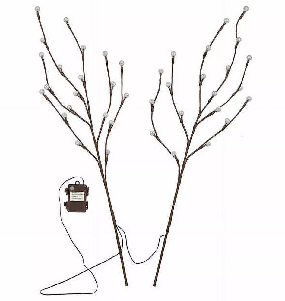 Add style and elegance to your home with the Evergreen Natural LED Posable Branches with 40 LED Bubble Lights. brown branches enhance light for extra shine. Add dazzle to your home with 3 AA batteries. Push button battery pack with auto-timer. Auto-timer turns lights on for 6 hours, off for 18 hours. Light Color: Warm White. 2 light functions: white...